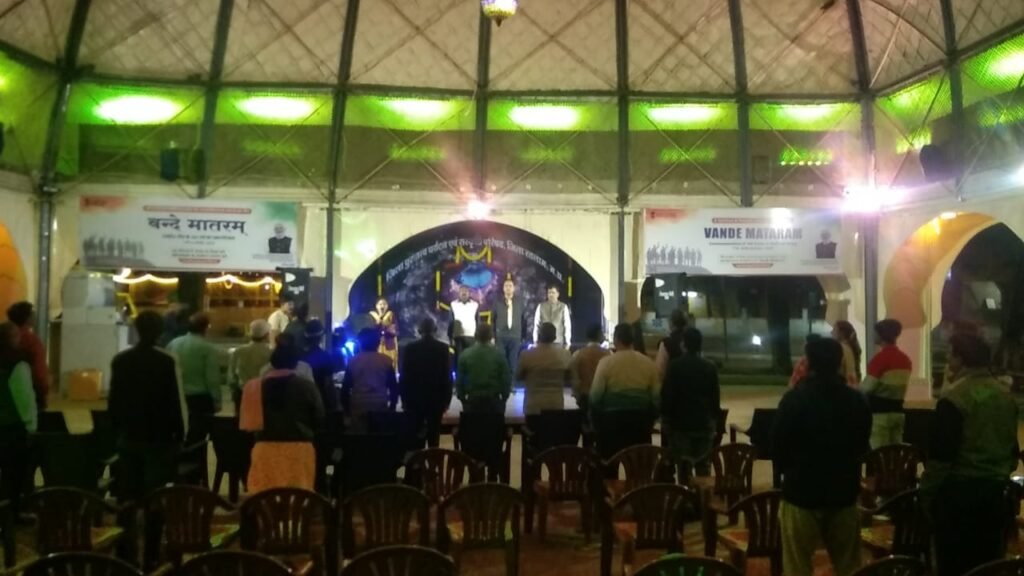 इस अवसर पर उपस्थित जनों ने ‘वन्दे मातरम्’ राष्ट्रीय गीत के 150 वर्ष पूर्ण होने पर सामूहिक गान कर राष्ट्रभक्ति की आहूति दी।