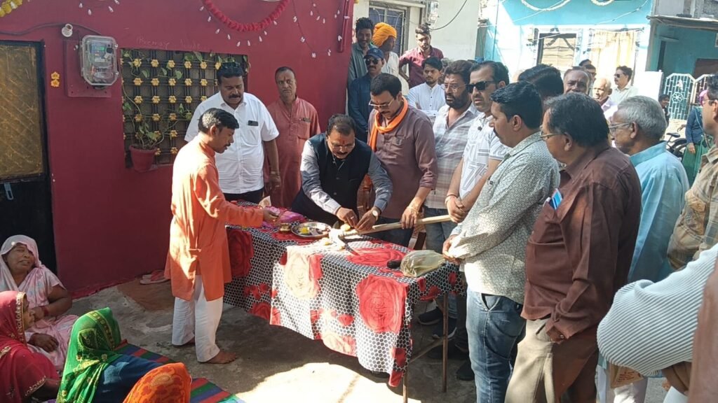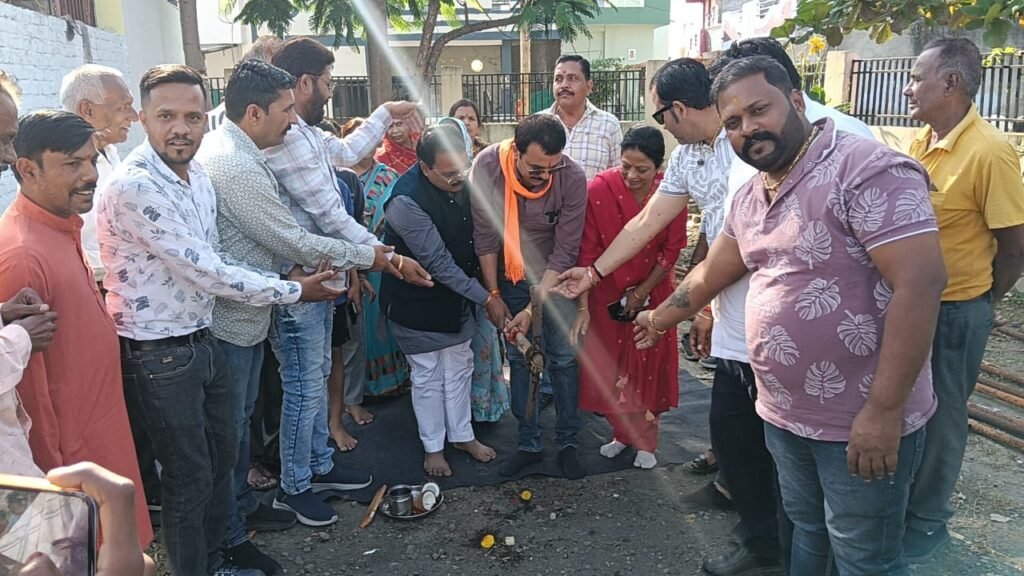 रतलाम 10 नवम्बर । वार्ड क्रमांक 5 स्थित विनोबा नगर डी कॉलोनी में सीमेन्ट कांक्रीट सड़क निर्माण व रेल नगर गली नम्बर 4 रामलीला मैदान उद्यान में पेवर ब्लॉक लगाने के कार्य का भूमि पूजन महापौर प्रहलाद पटेल ने विधिवत् पूजा-अर्चना कर किया।