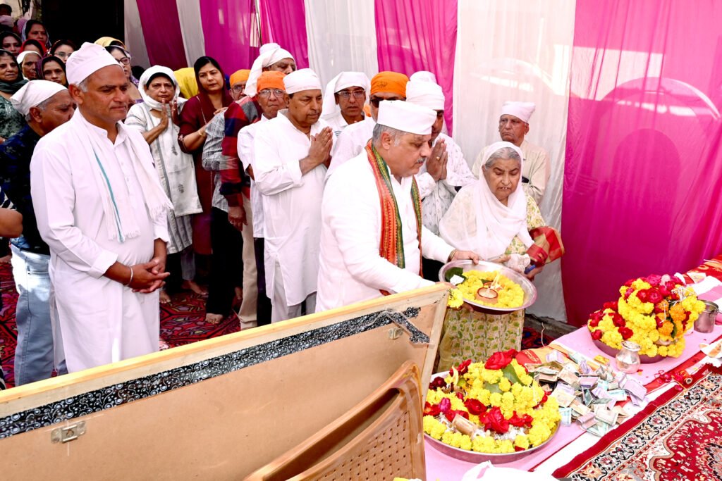 रतलाम । टीआईटी रोड़ स्थि दादी कुंदी दरबार में सांई श्री मनीषलाल जी (भरूच वाले) के सानिध्य में छठी महोत्सव (नामकरण) हर्षोल्लास से मनाया गया। जिसमें प्रात: 8 बजे अखंड पाठ साहेब का भोग के साथ ही गुरू पर रूमाल (पोशाख) सभी भक्तों द्वारा चढ़ाया गया। इस अवसर भव्य बहिराणा साहेब का आयोजन किया गया । बहिराणा में पाँच मोदक एवं तीन ज्योत बनाई गई तथा अन्न की आहूति सांई श्री मनीष लाल जी द्वारा सभी भक्तोंसे दिलवाई गई एवं भजन वं आरती की गई । जिसमें सैकड़ों भक्तों ने उपस्थित होकर धर्मलाभ लिया। अखंड पाठ की सेवा नानकीदेवी चोयथानी परिवार द्वारा की गई । कार्यक्रम के अंत में ज्योत मोदक बहिराणा साहेब को झाली तालाब में विसर्जित की गई। इस अवसर पर सांई मनीष लाल जी द्वारा समाजजनों को गुरूनावक देव जी के प्रकाश पर्व एवं छठी महोत्सव की बधाई एवं शुभकामनाएँ दी तथा आशीर्वचन कहें।