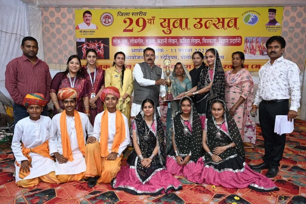 जिला स्तरीय युवा उत्सव में विज्ञान मॉडल प्रदर्शनी में प्रथम अभीजीत राजावत, द्वितीय तनिष सोलंकी, कहानी लेखन में प्रथम भाग्यश्री प्रजापत, द्वितीय मानवेन्द्रसिंह सोलंकी, कविता लेखन में प्रथम खुशबु रावल, द्वितीय मोहित बैरागी, पेंटीग में प्रथम रितिका जैन, द्वितीय अवनि बोहरा, भाषण में प्रथम गायत्री माहली, द्वितीय प्रियांश चत्तर, समूह लोकगीत संदिपनी स्कुल आलोट, द्वितीय भगतसिंह कॉलेज जावरा, समूह लोक नृत्य प्रथम कॉस्तुम संगीत क्लासेस, द्वितीय आदिवासी छात्र संगठन बाजना रहे। विजेता और उपविजेता प्रतिभागी संभाग स्तर पर, संभाग के विजेता राज्य स्तर पर, राज्य के विजेता राष्ट्र स्तर पर 10 से 12 जनवरी 2026 तक भारतमण्डपम् नई दिल्ली में सहभागिता करेगें। राज्य स्तर पर विजेता प्रतिभागीयो को नगद पुरूस्कार से सम्मानीत किया जाएगा। जिला स्तरीय आयोजन में विजेता प्रतिभागी 14 नवम्बर एवं 15 नवम्बर को संभाग स्तरीय प्रतियोगिता हेतु उज्जैन जाएंगे। कार्यक्रम में मंच का संचालन जितेन्द्र धुलिया, व आभार दुर्गाशंकर मोयल द्वारा किया गया।