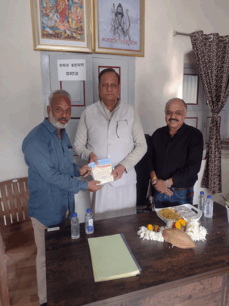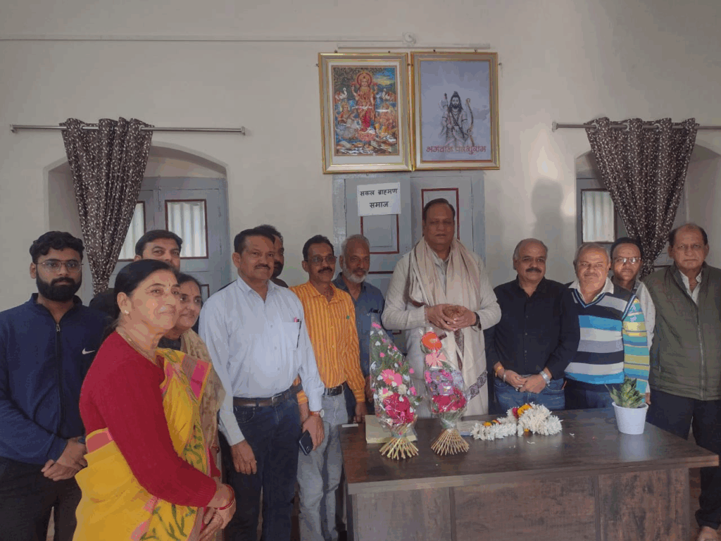 रतलाम । महर्षि परशुराम ब्राह्मण सहकारी साख संस्था मर्यादित रतलाम कार्यालय न्यू रोड स्थित ब्राह्मण बोर्डिंग पर जावरा के यशस्वी लोकप्रिय विधायक डॉ राजेन्द्र जी पाण्डे मुख्य अतिथि के रुप में कार्यालय पर पधारे संस्था के सदस्यों द्वारा पुष्प माला से स्वागत किया। आपके द्वारा संस्था के विकास हेतु हर संभव सहयोग का आश्वासन दिया। डॉ राजेन्द्र पाण्डे ने श्री राजेश दवे अध्यक्ष श्री सज्जन ब्राह्मण छात्रावास को अंश प्रमाण पत्र भी वितरण किया। इस अवसर पर श्री संदीप जी व्यास श्री राजेन्द्र कुमार जोशी श्री नवनीत मेहता, हेमन्त तिवारी श्रीमती सुषमा नारमदेव, श्रीमती रजनी व्यास, श्री राजेश जोशी,श्री अजय कुमार गौतम, श्री संजीव द्विवेदी, श्री शुभम शर्मा, श्री चैतन्य शर्मा उपस्थित थे। संस्था के पदाधिकारियों और सदस्यों द्वारा आभार व्यक्त किया।