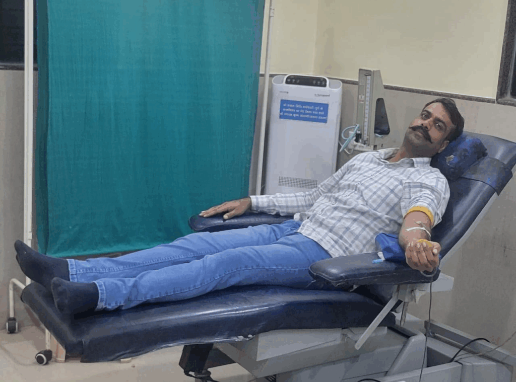 रतलाम। मध्य प्रदेश पुलिस के ध्येय वाक्य देश भक्ति–जन सेवा को चरितार्थ करते हुए रतलाम पुलिस में पदस्थ पुलिस प्रशासन में सेवारत रक्तदाता आर. मयंक व्यास (साइबर सेल रतलाम पुलिस) ने हेल्पिंग हैंड्स ग्रुप & टिम (हेल्पिंग हैंड्स रतलाम वेलफेयर सोसाइटी) के सहयोग से आज रतलाम में भर्ती 13 माह के जुड़वा मासूम बच्चों को रक्त की आवश्यकता होने पर अपना अमूल्य रक्तदान कर अनजान मासूम बच्चों को नया जीवनदान दिया।