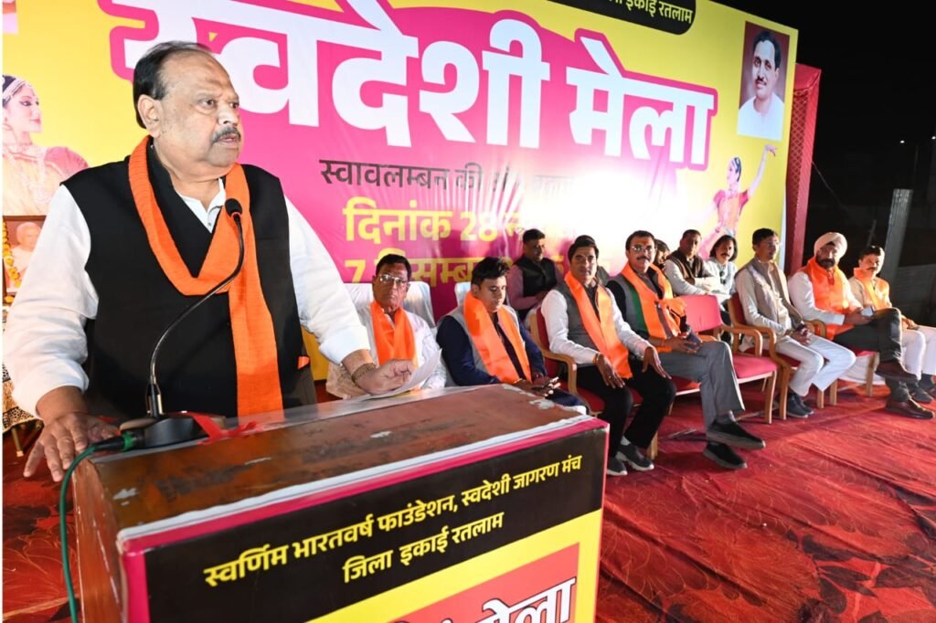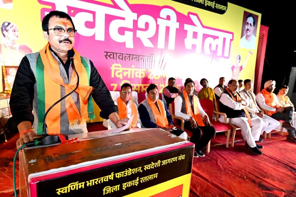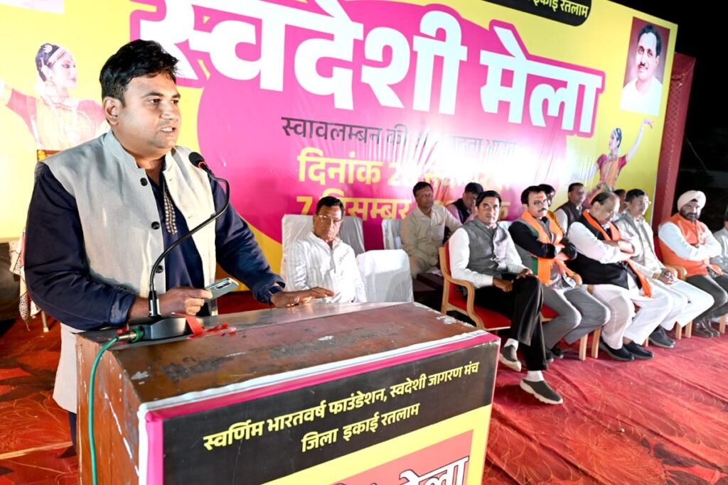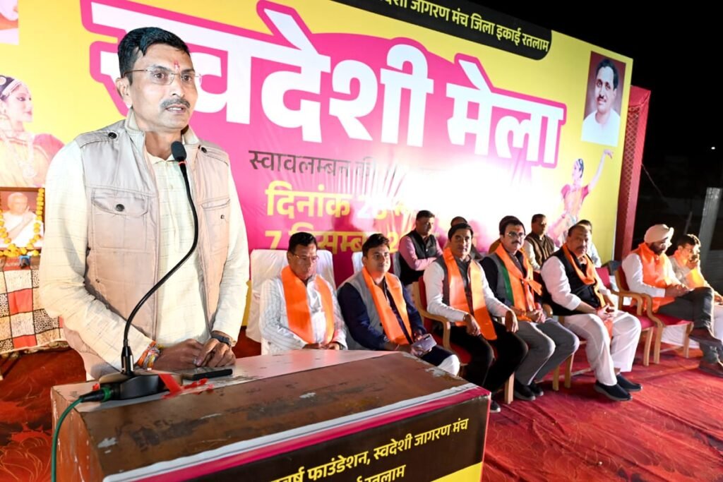 उक्त विचार स्वर्णिम भारतवर्ष फाउंडेशन और स्वदेशी जागरण मंच के तत्वावधान मे स्वदेशी मेले के शुभारंभ के अवसर पर मध्यप्रदेश शासन के कैबिनेट मंत्री चैतन्य काश्यप ने व्यक्त किए। आपने कहा की वर्तमान समय मे स्वदेशी का बहुत महत्त्व है, हमारा भी दायित्व होता है की हम स्वदेशी से जुड़े.। स्वदेशी की बात पहले भारत को स्वतंत्र करने के लिए हुए थी। आर एस एस ने उसी भावना को स्वतंत्रता के बाद पुनः जाग्रत करने के लिए की है। हमारे प्रधानमंत्री मोदी जी ने स्वदेशी और आत्मनिर्भर भारत बनाने के लिए बहुत काम किए है, और प्रदेश के मुख्यमंत्री मोहन यादव भी इसी काम का आगे बड़ा रहे है। पुरे देश मे 600 से ज्यादा जगह पर स्वदेशी मेले का आयोजन हो रहा है, इसमें जनता के साथ साथ जनप्रतिनिधि यों को भी अपने मन मे भाव जगाना पड़ेगा। स्वदेशी एक संस्कार है इसको सिर्फ बोलने से काम नहीं चलेगा, हमें तीन बिंदु पर काम करना पड़ेगा। पहला स्वदेशी के प्रति समाज मे जाग्रति लाना, दुसरा व्यापारियों के मन मे स्वदेशी का भाव लाना और तीसरा स्वदेशी वास्तु का उत्पादन बढ़ाना। इस के लिए हमें समाज के हर वर्ग मे स्वदेशी को अपनाने के लिए जागृति लाना होंगी, और उसके साथ साथ व्यापार करने वाले व्यापारियों को स्वदेशी उत्पाद को बेचने के लिए ज्यादा से ज्यादा प्रेरित करना पड़ेगा और साथ मे स्वदेशी उत्पाद को बढ़ावा देने के लिए इस से सम्बंधित कुटीर उद्योग, गृह उद्योग को बढ़ावा देना होगा, मध्यप्रदेश सरकार इस के लिए बहुत काम कर रही है। स्वदेशी के प्रति लोगो के मन मे आकर्षण बढ़ाने के लिए ऐसे मेले का आयोजन आज हो रहे है, मगर इसके लिए अपने में मे सबसे पहले स्वदेशी का भाव जगाने की सबसे पहले आवश्यकता है.। मंत्री काश्यप ने मेला संयोजक वरुण पोरवाल एवं उनकी पूरी कार्यकारिणी को बधाई देते हुए रतलाम में प्रथम बार स्वदेशी मेला आयोजित करने के संकल्प को मूर्त रूप देना प्रशंसनीय कार्य बताया ।