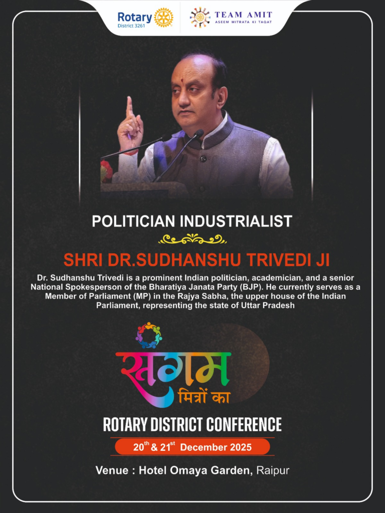 विशिष्ट वक्ताओं में राज्यसभा सांसद डॉ सुधांशु त्रिवेदी, केन्द्रीय मंत्री धर्मेंद्र प्रधान, डॉ रमन सिंह (छग विधानसभा अध्यक्ष) राज्यसभा सांसद विवेक तन्खा, पूर्व प्रांतपाल, सोनू शर्मा सहित सभी कई नामचीन हस्तियों कार्यक्रम में शामिल होने रायपुर आ रहे हैं