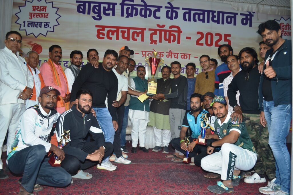 रतलाम 7 दिसंबर । आज रविवार को सज्जन मिल रोड स्थित आईटीआई खेल का मैदान में बाबुस क्रिकेट क्लब के तत्वाधान में हलचल ट्रॉफी ट्रॉफी 2025 आयोजित की जा रही है। फाइनल में विजेता मासूम गोधरा रही जिसे मिल ₹100000 और चमचमाती हुई ट्रॉफी और उपविजेता रही पंचम गणेश को मिला 51000 रुपए का नगद पुरस्कार एवं ट्रॉफी दी गई।