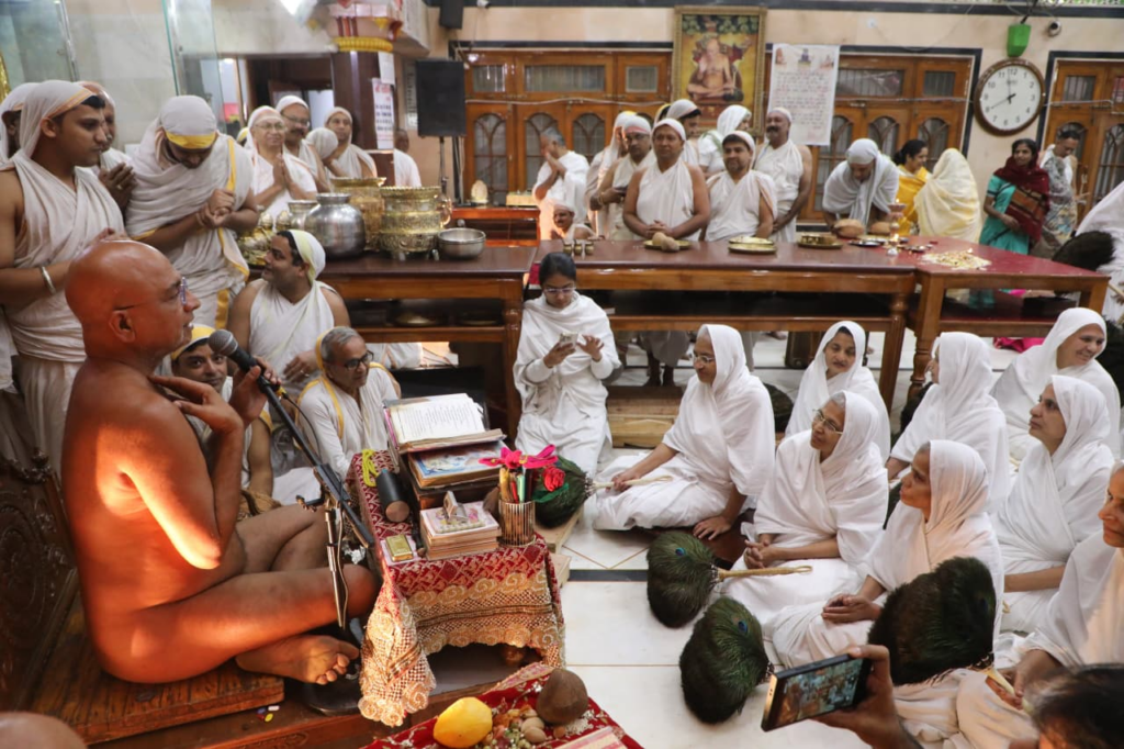 गाज़ियाबाद (राजेश जैन दद्दू ) । श्रमण संस्कृति के महामहिम आचार्य श्री विद्यासागर जी महामुनिराज की परम वंदनिय आर्यिका माता पुर्णमंती माता जी संसघ का आचार्य श्री अंतर्मना आचार्य श्री प्रसन्न सागरजी महाराज संसघ से सूर्य नगर जैन मंदिर, गाज़ियाबाद में इतिहास का एक अद्वितीय स्वर्णाक्षरी अध्याय अंकित हुआ।