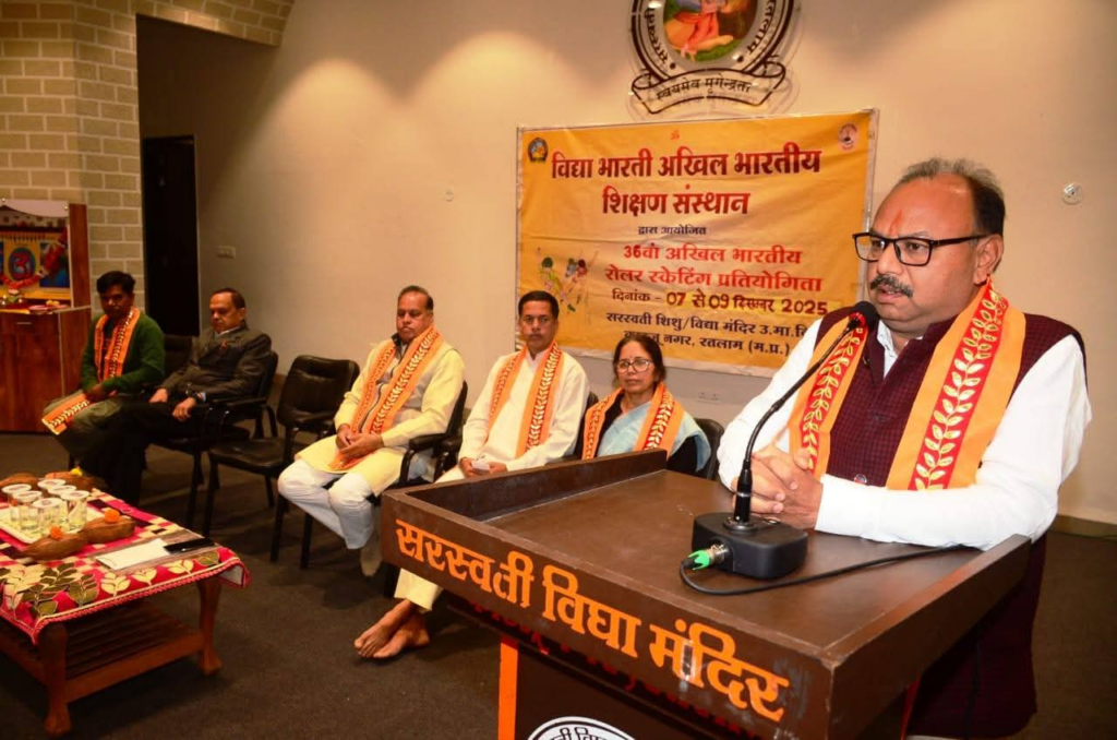 रतलाम। विद्या भारती की अखिल भारतीय शिक्षा के अंतर्गत 36वीं अखिल भारतीय स्केटिंग प्रतियोगिता का शुभारंभ संघ शताब्दी सभागार सरस्वती शिशु मंदिर काटजू नगर (मध्य क्षेत्र) में हुआ। सर्वप्रथम अतिथियों ने मां सरस्वती के चित्र पर माल्यार्पण व पूजन-अर्चन किया। अतिथि परिचय पूजा जोशी ने दिया। अतिथियों का स्वागत सरस्वती शिशु शिक्षा समिति के उपाध्यक्ष जबाहर चौधरी, उपाध्यक्ष सुनील लाठी, सचिव शैलेंद्र सुरेका, राधेश्याम बूंदीवाल, सुभाष चत्तर, राजेंद्रसिंह विष्ट, चंद्रसिंह देवड़ा, अरविंद सेठिया, अनु वाष्र्णेय, खेल शिक्षिका महिमा जाट ने किया।