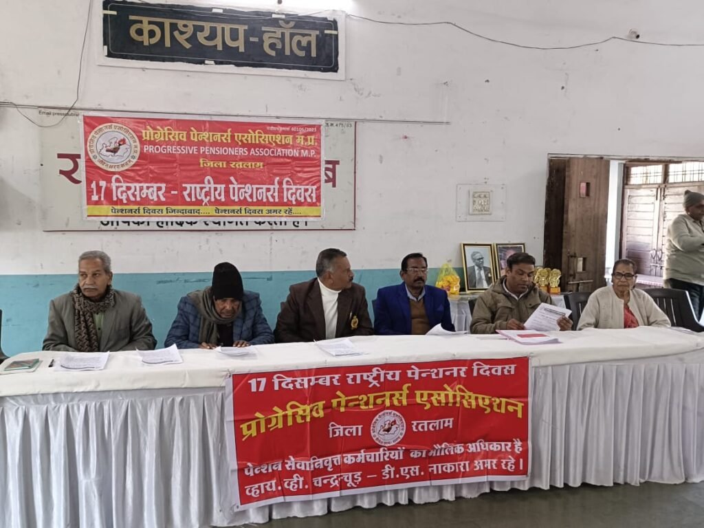रतलाम। प्रोग्र्रेसिव पेंशनर्स एसोसिएशन द्वारा स्थानीय प्रेस क्लब भवन में राष्ट्रीय पेंशनर्स दिवस कार्यक्रम साहित्यकार प्रो. रतन चौहान की अध्यक्षता में मनाया गया।
