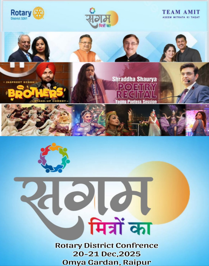 रायपुर,17 दिसम्बर। रोटरी इंटरनेशनल डिस्ट्रिक्ट 3261 के प्रांतपाल रोटे अमित जायसवाल एवं डिस्ट्रिक्ट की प्रथम महिला रोटे पल्लवी जायसवाल के नेतृत्व में आयोजित डिस्ट्रिक्ट कांफ्रेंस “संगम मित्रों का” में सम्मिलित होने हेतु अब तक ऐतिहासिक रूप से सर्वाधिक 1100 से अधिक रोटरी सदस्यों ने अपना पंजीयन करा लिया है। सभी रोटेरियन 19 दिसंबर की प्रातः से रायपुर पहुंचना प्रारंभ करेंगे।
