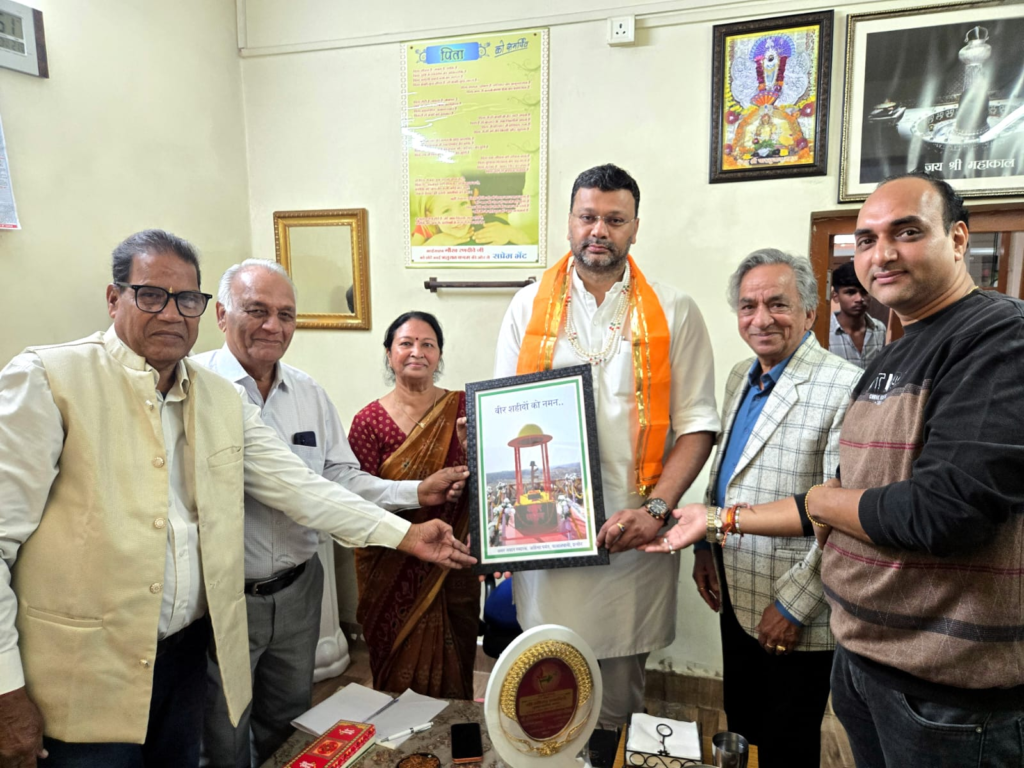 इंदौर (राजेश जैन दद्दू) । पातालपानी स्थित अहिंसा पर्वत पर निर्मित अमर जवान स्मारक की यादगार फोटो प्रति नवनियुक्त प्रदेश भाजपा महामंत्री श्री गौरव जी रणधिवे को भेट करते हुए स्मारक के निर्माता पर्यावरणविद् पत्रकार अशोक मेहता एवं श्रीमती शांता भामावत, भंवरलाल कास्वा, पुखराज लसोड हेमंत जैन और सुनील पटवा। राजेश जैन दद्दू ने कहा कि अमर जवान स्मारक का निर्माण किसी निजी व्यक्ति द्वारा अपनी निजी भूमि पर प्रथम बार अपने निज धन से कराया गया। दद्दू जानकारी देते हुए बताया कि अमर जवान स्मारक का लोकार्पण 10 नवंबर 2025 को रिटायर्ड लेफ्टिनेंट जनरल संधू जी और ब्रिगेडियर संजीव जी के कर कमल से भव्य रूप से समारोहित किया गया था।