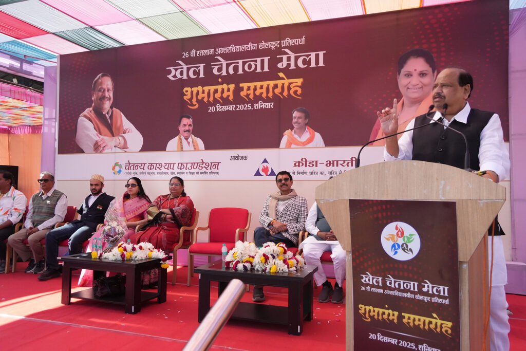 क्रीड़ा भारती के राष्ट्रीय कार्याध्यक्ष, फाउंडेशन अध्यक्ष एवं सूक्ष्म, लघु एवं मध्यम उद्यम मंत्री चेतन्य काश्यप ने कहा कि एशियन यूथ पैरा 2025 की स्विमिंग स्पर्धा में भारत को पहली बार गोल्ड दिलाने का काम हमारे रतलाम के अब्दुल कादिर ने किया है। बच्चों से एक बात कहूंगा कि हम पहले उद्घाटन में अतिथि बाहर से बुलाते रहते थे। अब मुझे लगता है कि आप अब्दुल से प्रेरणा ले और हर वर्ष कोई न कोई बच्चा राष्ट्रीय व अंतरराष्ट्रीय स्तर पर खेले, जिससे हर वर्ष रतलाम का खिलाड़ी इस मंच पर दिखे | इससे इस मेले की सार्थकता होगी। खेल सिर्फ जीतने के लिए या प्रतियोगिता के लिए नहीं होते है। यह एक नियमित प्रक्रिया है, ऐसा संकल्प डालना चाहिए। मुख्यमंत्री डॉ. मोहन यादव ने हर विधानसभा में एक सर्वसुविधायुक्त स्टेडियम बनाने की घोषणा की है। मध्यप्रदेश में खेलों का माहौल बनाने का उनका संकल्प है। खेल संगठन एवं स्कूल भी खेलों को आगे बढ़ाए। बच्चों को खेलों के लिए प्रोत्साहित करें। बच्चों में रूचि हो, इसके लिए शिक्षक के साथ स्कूल खेल प्रशिक्षक भी रखें। बच्चों का भविष्य बनाने में खेल मेला माध्यम बनेगा।