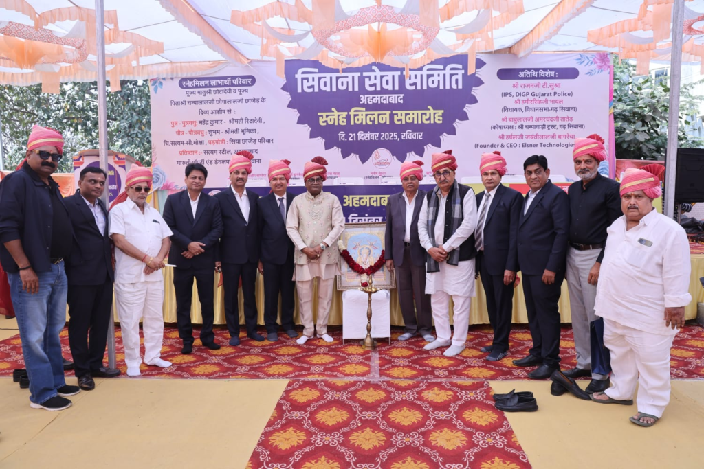 अहमदाबाद । राजस्थान प्रान्त के गढ़सिवाना नगर के जैन समाज के प्रवासी बंधुओ के संगठन सिवाना सेवा समिति का वार्षिक स्नेहमिलन गांधीनगर स्थित महावीर जैन आराधना केन्द्र , कोबा तीर्थ में रविवार को (दि.,21.12.25) आयोजित हुआ जिसमे प्रवासियों ने उत्साह व उमंगपूर्वक भाग लिया।