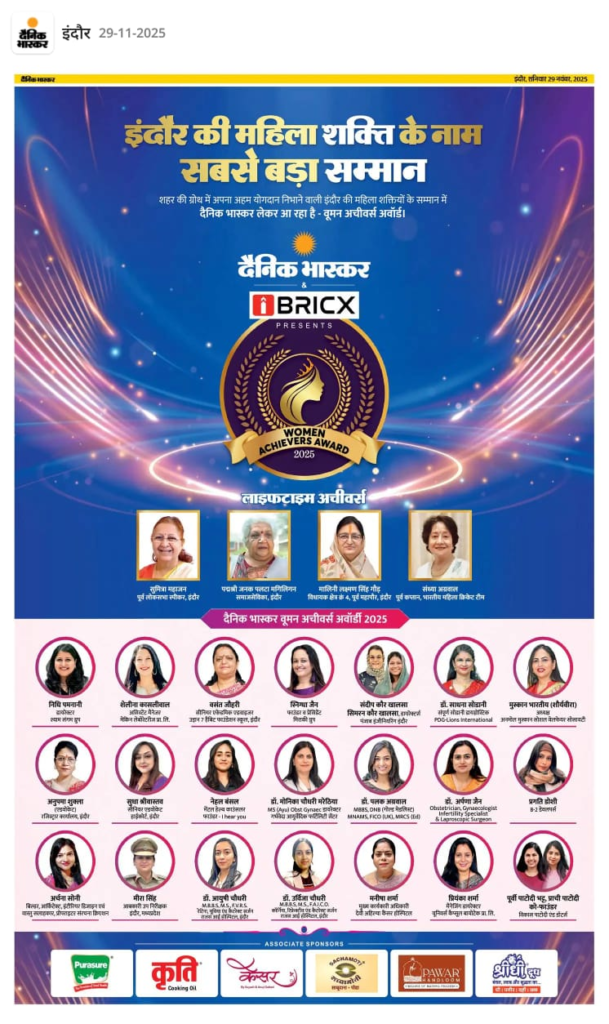 इंदौर (राजेश जैन दद्दू ) । दैनिक भास्कर द्वारा आयोजित लाइफ टाइम अचीवर्स समाजसेवी सम्मान इंदौर की सशक्त नारी शक्ति डॉक्टर अर्पणा जैन जो अपने पेशे में बहुत नाम कमा रही है। आप के इस सम्मान से इंदौर सहित जैन समाज भी गोरवान्वित हुआ है आप शहर की बहू प्रतिष्ठित गायक्नोलोजिस्ट एवं लैप्रोस्कोपी सर्जन है। आप को देनिक भास्कर द्वारा वूमन्स अचीवर्स अवॉर्ड प्रदान किया जाना अत्यंत गौरव और हर्ष का विषय है।