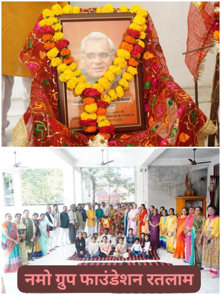 रतलाम। नमो ग्रुप फाउंडेशन, रतलाम द्वारा तुलसी दिवस के पावन अवसर पर तुलसी पूजन का आयोजन किया गया। साथ ही भारत रत्न, पूर्व प्रधानमंत्री एवं भारतीय जनता पार्टी के संस्थापक श्रद्धेय अटल बिहारी वाजपेई जी के जन्म शताब्दी वर्ष के उपलक्ष्य में उनकी जन्म जयंती श्रद्धा, सम्मान एवं राष्ट्रभावना के साथ मनाई गई।