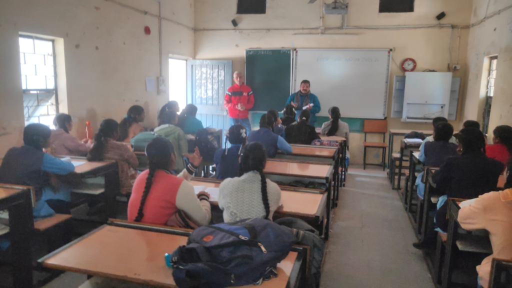 रतलाम। दिनांक 27 दिसम्बर 2025 को उच्च शिक्षा विभाग, मध्य प्रदेश शासन के निर्देशानुसार जिले में विद्यार्थियों को उच्च शिक्षा के प्रति प्रोत्साहित करने के लिए ‘कॉलेज चलो अभियान’ जोर-शोर से चलाया जा रहा है। इसी कड़ी में आज, डॉ. कैलास नाथ काटजू विधि महाविद्यालय, रतलाम की टीम ने भ्रमण कर शासकीय नवीन कन्या उच्चतर माध्यमिक विद्यालय आनंद कॉलोनी रतलाम की छात्राओं को कानून की पढ़ाई और करियर की संभावनाओं के बारे में महत्वपूर्ण जानकारी दी।