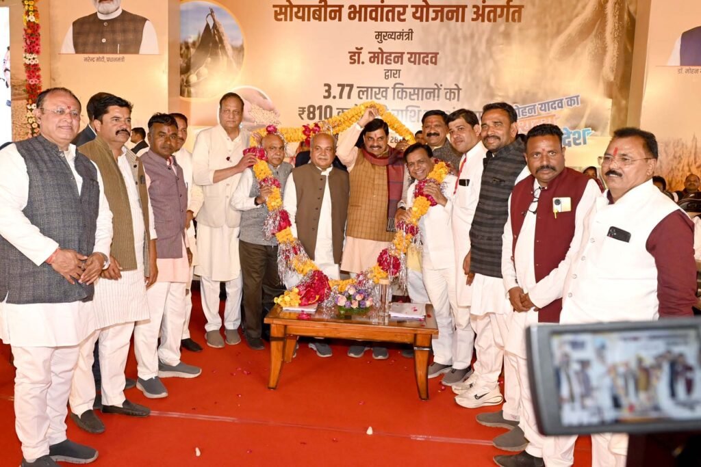 - मुख्यमंत्री डॉ. यादव ने 3.77 लाख सोयाबीन उत्पादक किसानों को अंतरित की 810 करोड़ रुपए भावांतर राशि