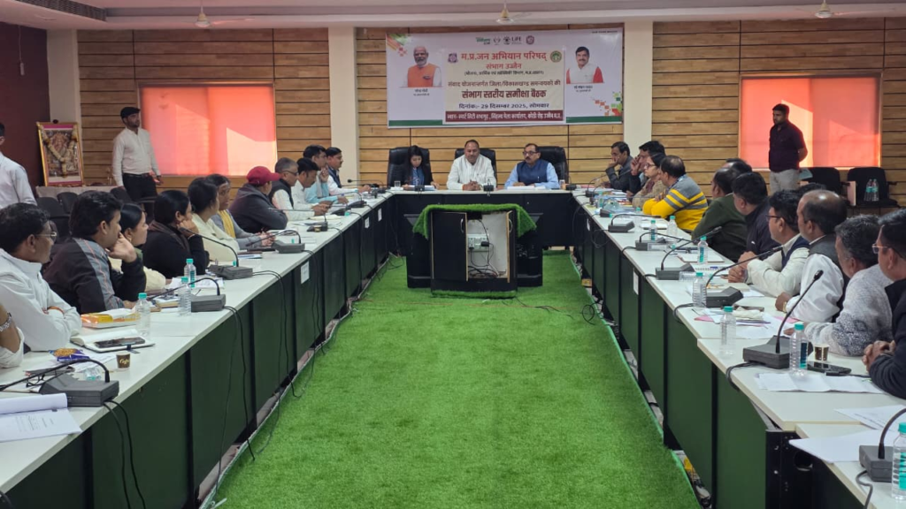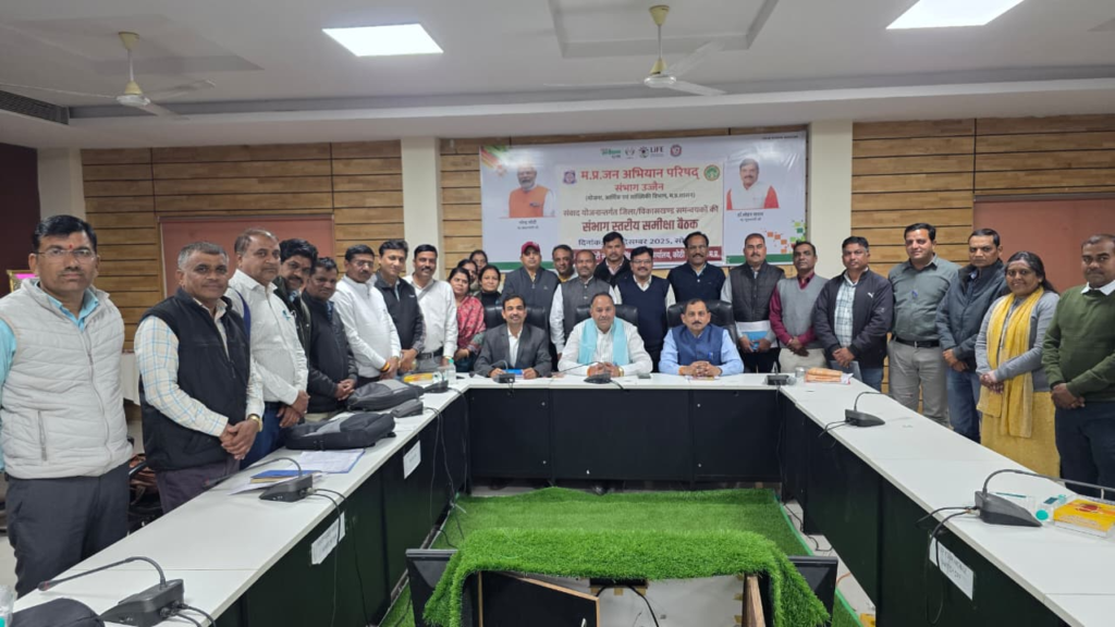 उज्जैन । म.प्र. जन अभियान परिषद उज्जैन संभाग की संभागीय एक दिवसीय समीक्षा बैठक का आयोजन सिंहस्थ् मेला कार्यालय के सभा कक्ष कोठी रोड उज्जैंन में किया गया। समीक्षा बैठक का शुभारंभ मॉ सरस्वती के चित्र पर माल्या र्पण एवं दिप प्रज्वयलन जन अभियान परिषद के मा. उपाध्यतक्ष मोहन नागर, शास निकाय की सदस्यर श्रीमती अजिता परमार, कार्यपालक निदेशक महोदय डॉ. बकुल लाड, संभाग समन्वायक शिव प्रसाद मालवीय द्वारा किया गया।