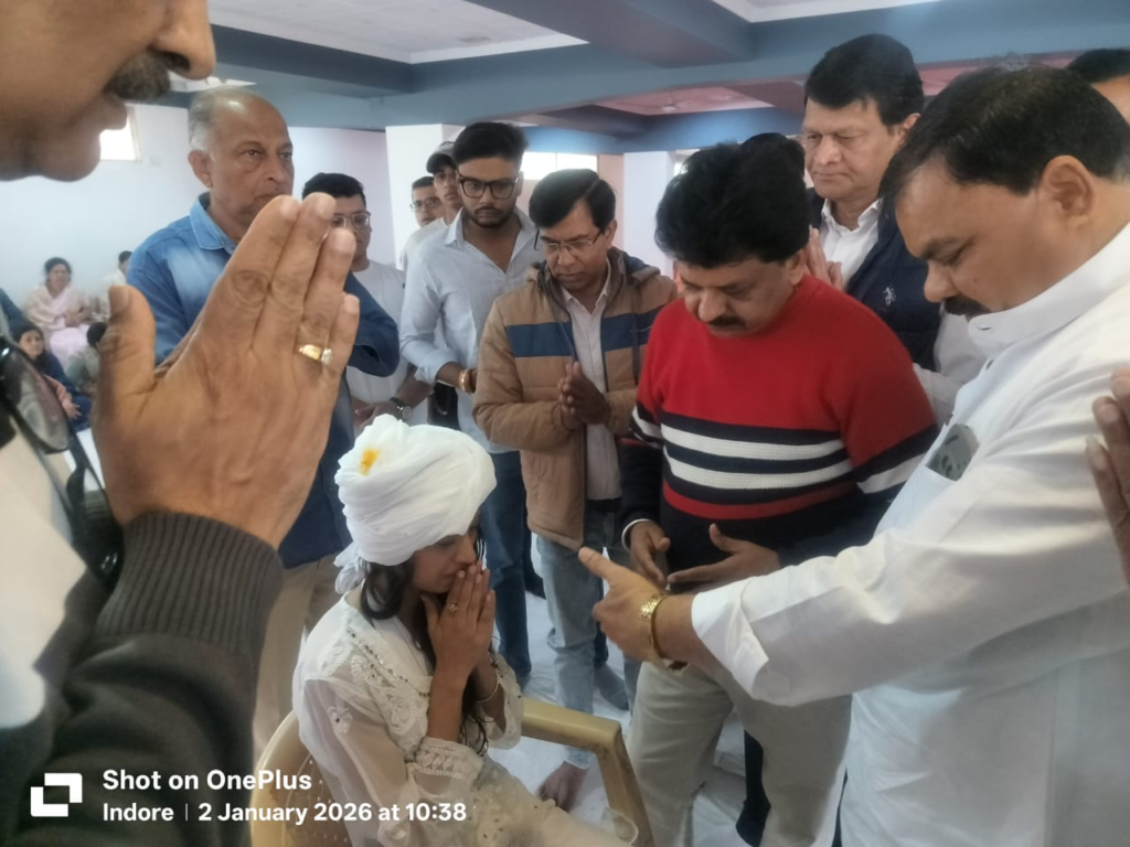 इंदौर (राजेश जैन दद्दू) । आज इंदौर के कनकेश्वरी धाम में दवा व्यवसायई आनंद जैन के उठावना एवं पगड़ी कार्यक्रम में इंदौर परवार जैन समाज ने नई पहल करते हुए बेटी को बेटा मानकर उसे पगड़ी पहना कर जिम्मेदारी सौंपी । धर्म समाज प्रचारक राजेश जैन दद्दू ने बताया कि परवार दिगंबर समाज के कार्य अध्यक्ष सुदीप जैन ने कहा कि कुछ दिन पूर्व दवा व्यवसाय आनंद जैन का स्वर्गवास हो गया था उनके कोई पुत्र नहीं था सिर्फ एक बेटी है