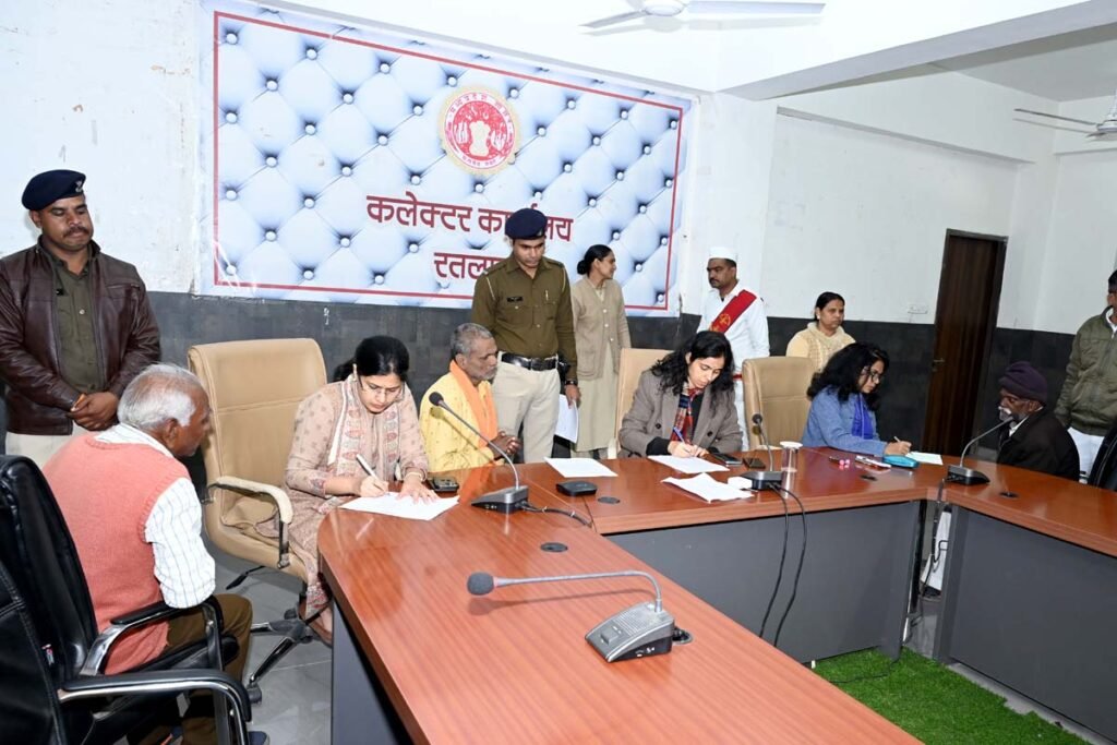 जनसुनवाई में आवेदक रूगनाथ पिता फत्ता गामढ़ निवासी ग्राम बंबोरी ने आवेदन दिया कि आवेदक की वन भूमि तालाब निर्माण कार्य में चली जाने पर तथा मुआवजा न मिलने पर उक्त भूमि के स्थान पर दूसरी भूमि प्रदान करने हेतु आवेदन दिया। कार्यवाही हेतु एसडीएम रतलाम को निर्देशित किया गया। आवेदक भूपेन्द्र व्यास निवासी पैलेस रोड़ रतलाम ने रतलाम महलवाड़ा के मुख्य मार्ग पर हरी घास बेचने वाले के द्वारा गंदगी फैलाये जाने के संबंध में आवेदन दिया। कार्यवाही हेतु कमिश्नर नगर निगम को निर्देशित किया गया।