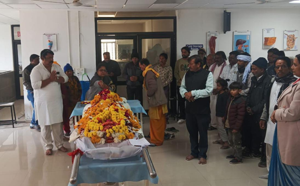 मेडिकल कॉलेज में देहदान के समय मंत्रोच्चार के साथ श्रद्धांजलि अर्पित की गई।