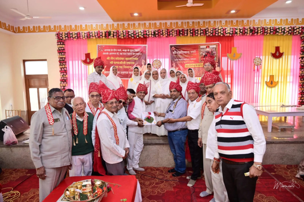 गढ़सिवाना । नगर के मोकलसर रोड़ स्थित श्री सीमंधर स्वामी जिन मंदिर, दादावाड़ी व गुरुमन्दिर के प्रतिष्ठा की 25वीं वर्षगांठ निमित्त आयोजित होने वाले रजत जयंती महोत्सव का पत्रिका आलेखन उत्सव दि. 8 जनवरी 2026 , को आयोजित हुआ जिसमे नगरजनों ने उत्साह व उमंग पूर्वक भाग लिया ।