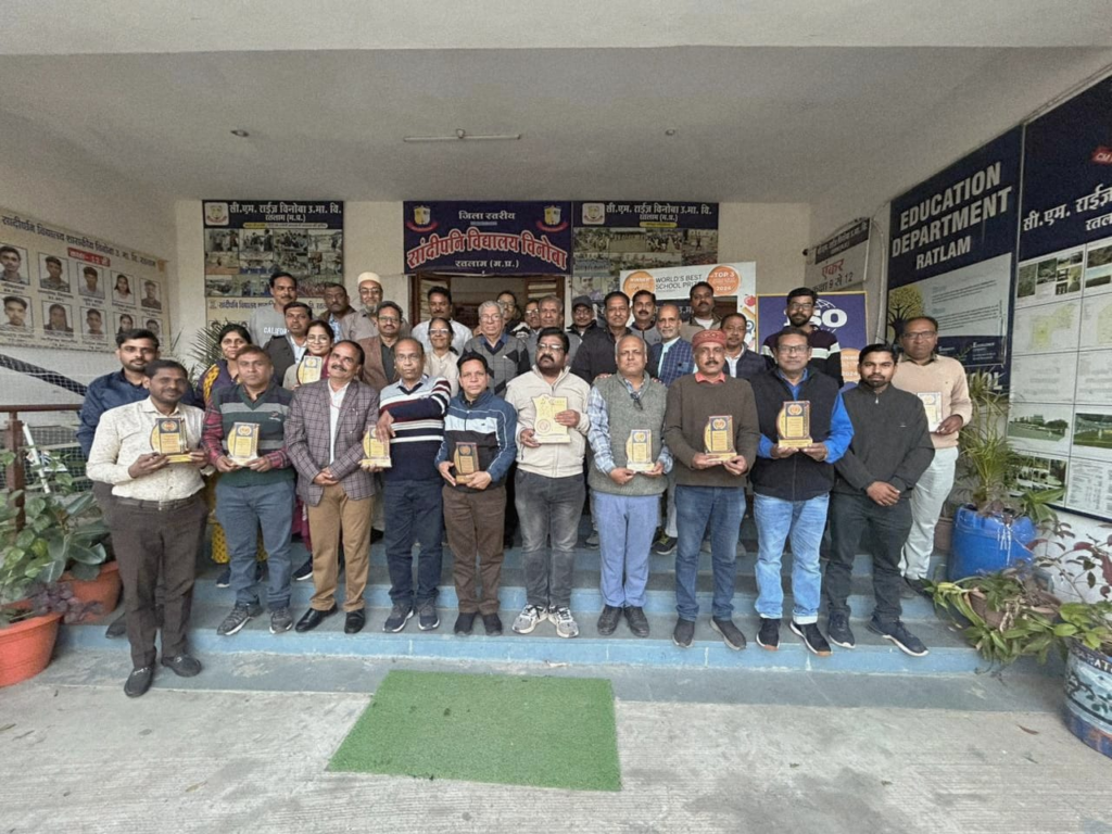 इस अवसर पर पिछले शिक्षा सत्र के दौरान शत प्रतिशत परीक्षा परिणाम देने वाले भौतिकविद प्राचार्यों एवं शिक्षकों को सम्मानित किया गया सम्मानित होने वालों में अरविन्द गुप्ता प्राचार्य संदीपनी स्कूल, बिरमावल , वीरेंद्र मिंडा प्राचार्य शा उत्कृष्ट उ मा वि सैलाना, इंस्पायर अवार्ड में रतलाम जिले के पूरे प्रदेश में सर्वश्रेष्ठ प्रदर्शन पर जितेंद्र जोशी जिला विज्ञान अधिकारी एवं स्वतंत्र श्रोत्रिय सहायक जिला विज्ञान अधिकारी को सम्मानित किया गया। शिक्षक सम्मान में सैय्यद शराफत अली, शाउमावि बर्डीयागोयल, दिनेश व्यास, शाउमावि लुनेरा, ज्योति मंडलोई,शा सान्दीपनि विनोबा उ मा वि रतलाम, कृष्ण कुमार पाटीदार, शाउमावि, पलसोडी, सत्यनारायण रुहेला, शा कन्या उमावि शिवगढ़, अर्जुन चौधरी शा कन्या उमावि बाजना, डॉ प्रदीप प्रजापत शाउमावि धामनिया, भगवतीलाल चौधरी शा नित्यानंद उमावि धौंसवास, सुमन सिंह राठौर ,शा उत्कृष्ट उमावि सैलाना, अंकित जायसवाल शाउमावि बड़ावदा को सम्मानित किया गया। कार्यक्रम का संचालन आशीष दशोत्तर ने किया एवं आभार प्रदर्शन राकेश सिंह जादौन ने किया।