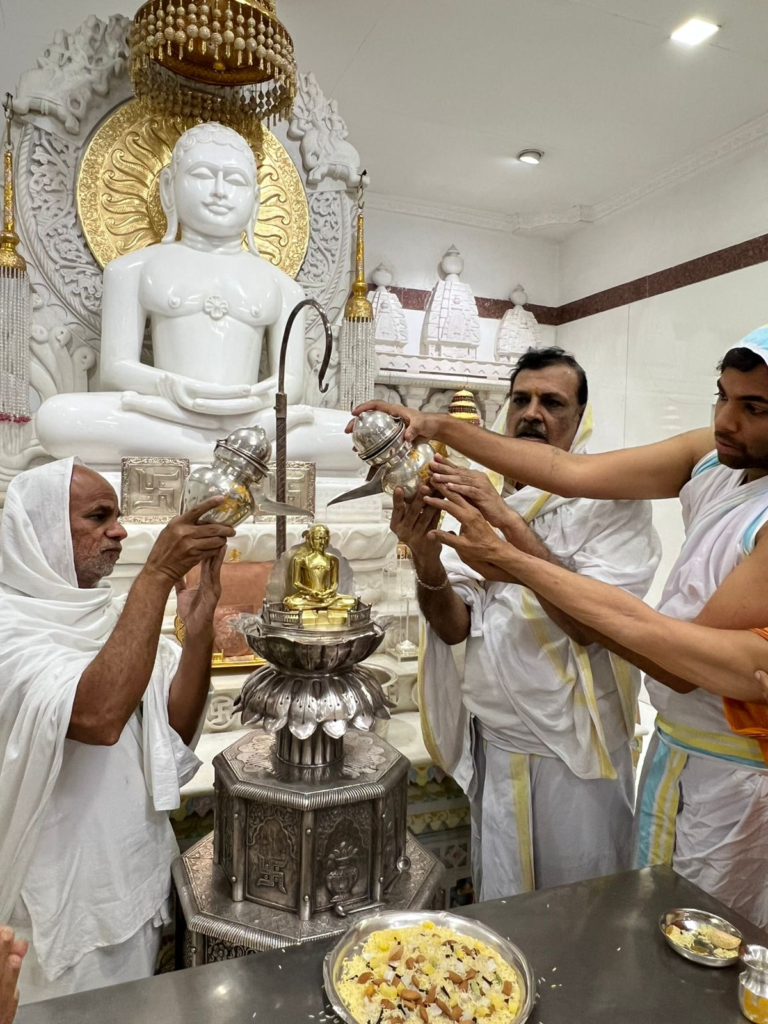 इंदौर (राजेश जैन दद्दू)। नगर की गौरवशाली दिगंबर जैन समाज के वरिष्ठ समाजसेवी एवं महादानी निरभिमानी भैया सुंदरलालजी जैन (बीड़ी वाले) की पंचम पुण्यतिथि के उपलक्ष में आज उदासीन आश्रम पलासिया स्थित श्री महावीर दिगंबर जैन मंदिर में स्वर्गीय भैया जी के परिवार द्वारा ब्रह्मचारी सुनील भैया के निर्देशन में भक्तांबर विधान, अभिषेक पूजन एवं शांति धारा की गई और आदिनाथ भगवान के मोक्ष कल्याणक के उपलक्ष में प्रभु प्रतिमा के समक्ष निर्माण लाडू भी समर्पित किया गया।