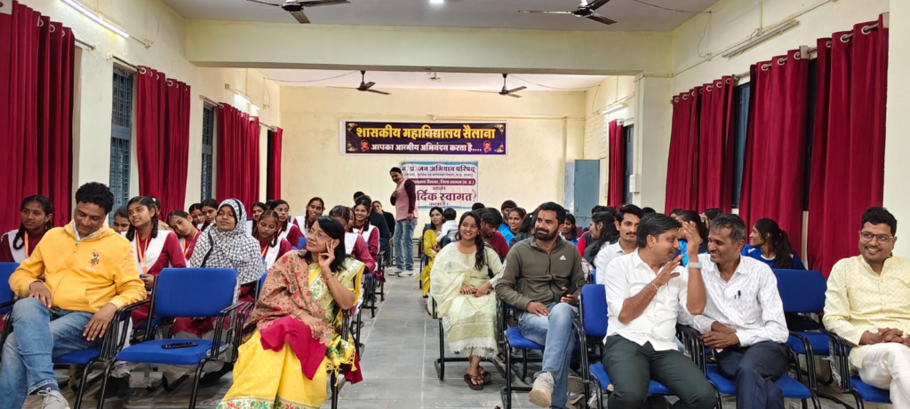 काॅलेज की छात्राओं द्वार एकल व सामुहिक राष्ट्र भक्ति गीत के पश्चात मुख्य अतिथि ASP राकेश खाखा ने विद्यार्थियों को करियर मार्गदर्शन को लेकर अपने व्यक्तिगत जीवन के अनुभव साझा किए। विद्यार्थियों को स्वयं का आत्ममंथन कर ,स्वयं के अंदर के व्यक्तित्व को पहचानकर अपने भविष्य के लिए अपना करियर चुनने की सलाह दी।