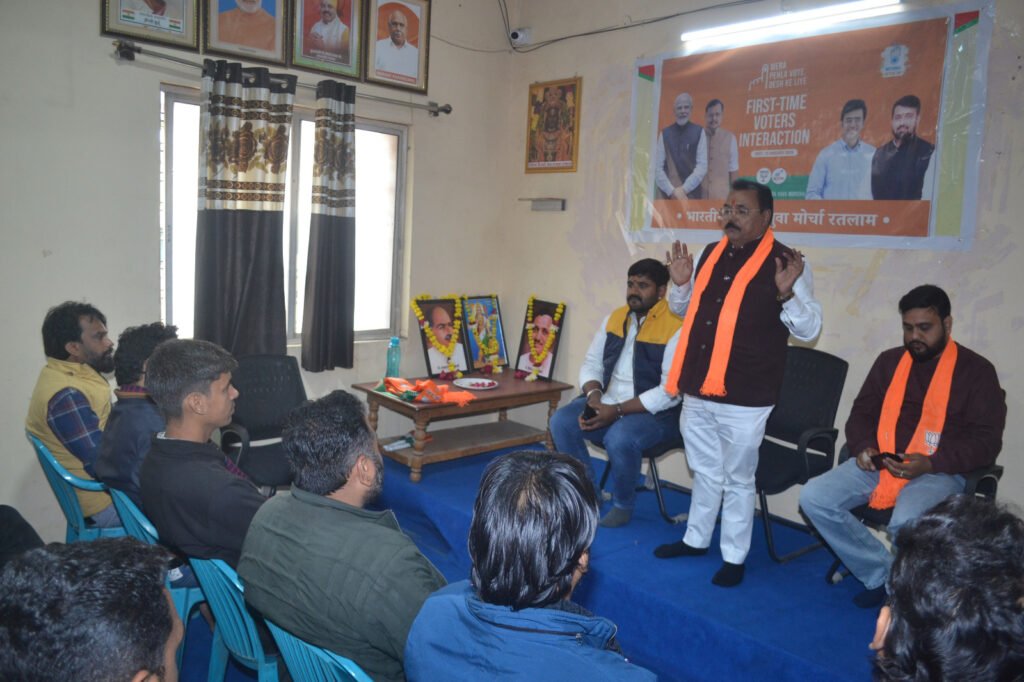 रतलाम 26 जनवरी । राष्ट्रीय मतदाता दिवस के अवसर पर भारतीय जनता युवा मोर्चा रतलाम ने “प्रथम बार मतदान करने वाले युवाओं से संवाद” कार्यक्रम “मेरा पहला वोट, देश के लिए” थीम पर आयोजित किया। कार्यक्रम का उद्देश्य नव मतदाताओं को लोकतंत्र में उनकी भूमिका के प्रति जागरूक करना एवं मतदान के महत्व को समझाना रहा।