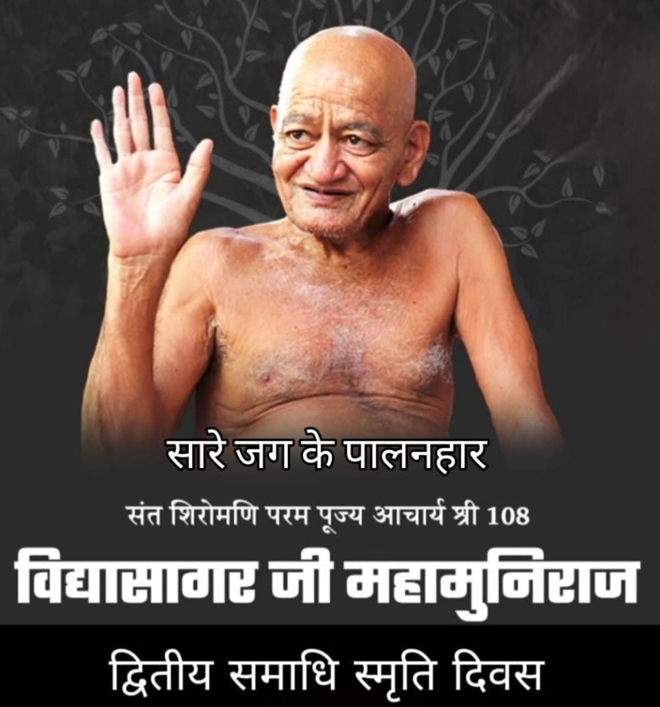 इंदौर (राजेश जैन दद्दू) । श्रंमण संस्कृति के महामहिम आचार्य श्री विद्यासागर जी महामुनिराज का दिव्तीय समाधी दिवस आज पुरे भारत में श्रद्धा एवं भक्ति के साथ मनाया जा रहा है। धर्म समाज प्रचारक राजेश जैन दद्दू ने कहा कि आचार्य श्री जी का देह का विसर्जन भले ही हुआ हो, पर आचार्य श्री १०८ विद्यासागर जी महाराज की तप संयम साधना,देशना, उनका तप और करुणा जब-तक सुरज चांद रहेगा तब तक आचार्य श्री जी सदा अमर रहेंगे। जिनवाणी आगम को जीवन का मार्ग बनाने वाले इस वसुंधरा के महामहिम युगप्रवर्तक संत का समाधि दिवस हमें आत्मशुद्धि, अहिंसा और वैराग्य की प्रेरणा देता है। उनके उपदेश मानवता को सही दिशा दिखाते रहेंगे। विश्व वंदनीय आचार्य श्री के चरणों में श्रद्धा, समर्पण और शत-शत नमन। महाराज श्री के समाधि दिवस पर कोटि-कोटि त्रिबार नमोस्तु।