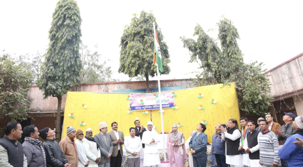 जावरा (अभय सुराणा) । नगर पालिका परिषद जावरा पर 77 वे गणतंत्र दिवस के अवसर पर नगर पालिका अध्यक्ष अनम मोहम्मद यूसुफ कड़पा द्वारा ध्वजारोहण किया गया उसके पश्चात नगर पालिका अध्यक्ष द्वारा सभी उपस्थित पार्षदों व गणमान्य नागरिकगण अधिकारीगण व कर्मचारियों को गणतंत्र दिवस की बधाई व शुभकामनाएं दी । इस अवसर पर नगर पालिका उपाध्यक्ष सुशील कोचट्टा,पूर्व नगर पालिका अध्यक्ष मोहम्मद यूसुफ कडपा, नगर पालिका सीएमओ राहुल शर्मा, नगर पालिका चेयरमैन लोकेश विजवा, मुस्तकीम मंसूरी, आसिफ कबाड़ी, पार्षद प्रतिनिधि विनोद औरा, अनीश कल्याने, दशरथ कसनिया, समाजसेवी डॉक्टर एच.एस.राठौर ,बलवंत सिंह, मसूद परदेसी ,अनिल सोनी, नगर पालिका इंजीनियर महेश चंद्र सोनी, लोकेश विजयवर्गीय, हेड साहब व्यास जी, लाल सिंह, शैलेंद्र सिंह,फतेह लाल माली, विकास त्रिवेदी ,लकी ,हरण पुखराज विडवान ,संजय सैनी, सिद्दीक भाई आदि उपस्थित थे।