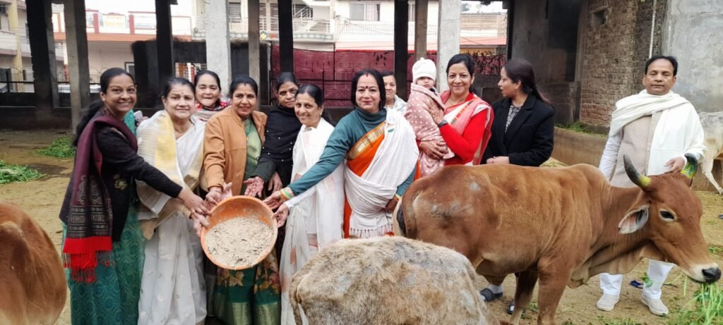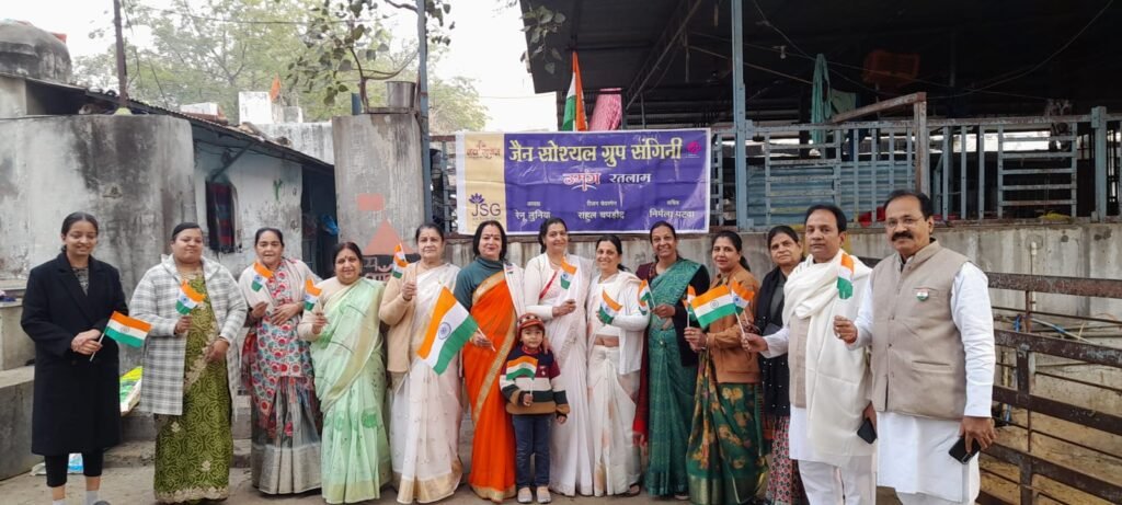 रतलाम । संगिनी उमंग परिवार रतलाम द्वारा अपनी सेवा के संकल्प के तहत एक और सेवा प्रोजेक्ट देश प्रेम संग जीव दया गोसेवा ग्रुप सखी किरण निर्मल मेहता द्वारा अपनी पोती के प्रथम जन्म दिवस पर दिनांक 26 -1-26 सोमवार को बकरा शाला गौशाला त्रिवेणी रोड रतलाम में गोसेवा का आयोजन किया गया। जिसके अंतर्गत गायो को हरी घास ,रोटी ,खली, कपासिया ,गुड़ का स्वल्पाहार कराया गया। इसी अवसर पर 26 जनवरी गणतंत्र दिवस पर झोन कोऑर्डिनेटर निर्मल जी मेहता के सानिध्य में झंडा वंदन का प्रोग्राम भी किया गया। इनका स्वागत ग्रुप अध्यक्ष रेनू लुनिया द्वारा किया गया।इस अवसर पर ग्रुप की प्रतिभा पाटनी, अरुणा नाहर, ममता भंडारी ,प्रीति जिन्दानी, प्रीति खिलौसिया, हंसा गादीया ,समता संघवी सहित बहुत सी सखियां व परिवारजन उपस्थित रहे। अंत में आभार निर्मला पटवा द्वारा व्यक्त किया गया।