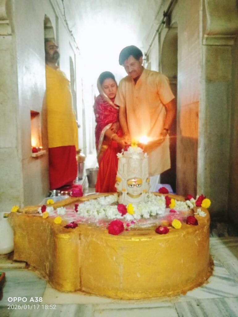 इसी क्रम में विगत दिवस पूर्व में स्थापित सनातन सोशल ग्रुप के पूर्व संस्थापक अलकापुरी निवासी अनिल पुरोहित, पूर्व पार्षद श्रीमती वंदना पुरोहित के सुपुत्र नैतिक पुरोहित व पुत्रवधू आस्था द्वारा अभिषेक कर पुण्य लाभ लिया गया। इस अवसर पर कु. प्राची पुरोहित, श्रीमती अनीता आचार्य, सूर्यकांत पुरोहित, श्रीमती संगीता पुरोहित, अनिल आचार्य आदि उपस्थित थे।