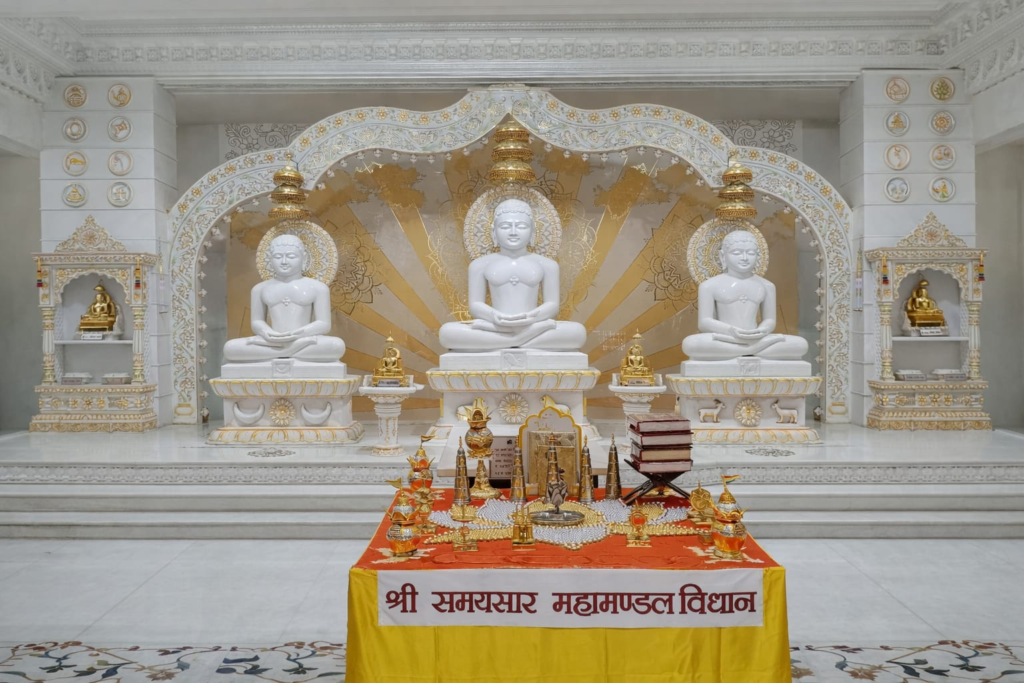 मंदिर की प्रथम वर्षगाँठ पर 1 फरवरी से 8 फरवरी 2026 तक श्री समयसार महामंडल विधान का भव्य आयोजन किया जा रहा है। आज जिनमंदिर में इस अवसर पर पंडित राजेंद्र जैन, मंडल अध्यक्ष अशोक जैन व् पयालवाला परिवार द्वारा मंगल मंत्रो के साथ जिनशासन का ध्वजारोहण किया गया और मंगलविधान का विधिवत शुभारंभ किया ।