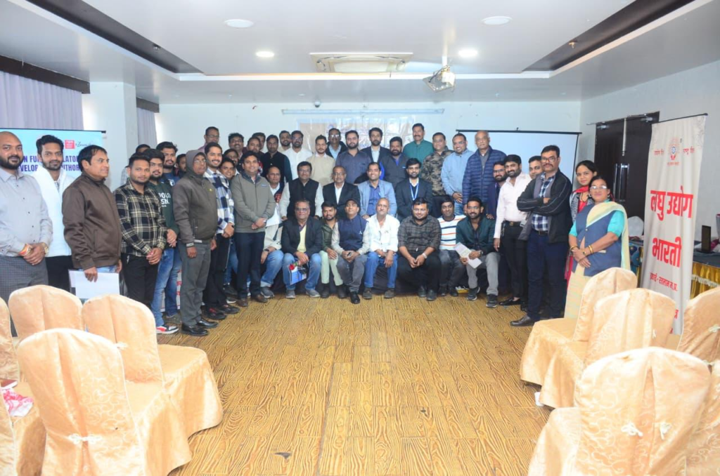 रतलाम। लघु उद्योग भारती रतलाम इकाई ने पेंशन फंड नियामक एवं विकास प्राधिकरण (PFRDA) के सहयोग से 04 फरवरी 2026 को होटल समता सागर पैलेस, रतलाम में राष्ट्रीय पेंशन प्रणाली (NPS) पर जागरूकता कार्यशाला का सफल आयोजन किया। इस कार्यशाला में 60 से अधिक MSMEs ने भाग लिया। कार्यक्रम में आईसीआईसीआई प्रूडेंशियल पेंशन फंड मैनेजमेंट, एचडीएफसी पेंशन तथा बैंक ऑफ इंडिया (रतलाम शाखा) के प्रतिनिधियों ने भी सक्रिय सहभागिता की। MSME उद्यमियों के बीच संरचित सेवानिवृत्ति योजना की आवश्यकता और NPS के लाभों पर विस्तृत चर्चा हुई। PFRDA के सहायक प्रबंधक श्री अभिषेक धिमान ने NPS विकल्पों के महत्व पर प्रकाश डालते हुए कहा कि यह योजना कर्मचारियों को वित्तीय सुरक्षा और गरिमा प्रदान करती है। उन्होंने अनौपचारिक कार्यबल तक पेंशन कवरेज बढ़ाने की आवश्यकता पर बल दिया और बताया कि NPS उद्यमों के लिए कर्मचारी स्थायित्व एवं दीर्घकालिक विकास में सहायक है।