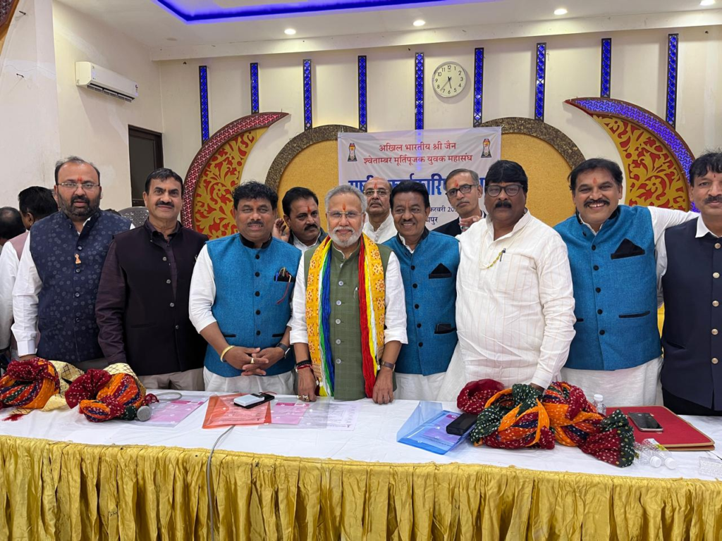 रतलाम। अखिल भारतीय श्री जैन श्वेतांबर मूर्तिपूजक युवक महासंघ की दो दिवसीय राष्ट्रीय कार्यकारिणी सभा जोधपुर में सफलतापूर्वक संपन्न हुई। सभा की अध्यक्षता अंतरराष्ट्रीय अध्यक्ष एवं भारत सरकार के राष्ट्रीय व्यापारिक कल्याण बोर्ड के चेयरमैन आदरणीय सुनील सिंधी ने की, जबकि राष्ट्रीय अध्यक्ष हरेशभाई शाह (पुणे) मुख्य अतिथि के रूप में उपस्थित रहे।