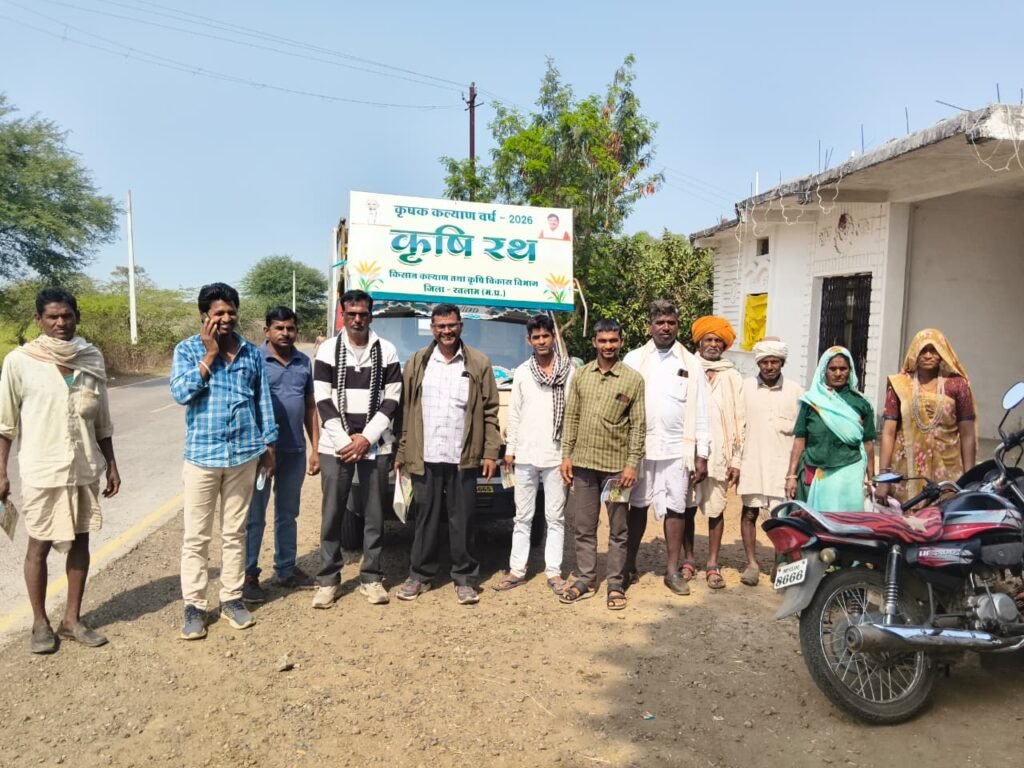 रतलाम 11 फरवरी। उप संचालक किसान कल्याण एवं कृषि विकास श्रीमती नीलम सिंह चौहान ने बताया कि शासन के निर्देशानुसार 11 जनवरी से 11 फरवरी तक जिले मे कृषक कल्याण वर्ष 2026 के अंतर्गत कृषि रथ का संचालन किया गया । जिसमें कृषि एवं संबद्ध विषयों जैसे उद्यानिकी, पशुपालन, आत्मा, मत्स्य पालन आदि पर किसानों एवं कृषि वैज्ञानिकों के मध्य सीधा संपर्क कायम कर नवीन एवं वैज्ञानिकी तकनीकी सुधार की जानकारी कृषकों को दी जा रही। रथ भ्रमण के अंतिम दिन आज 11 फरवरी को विकासखंड आलोट के कछालिया, अरवालिया सोलंकी, हिंगड़ी विकासखंड सैलाना के खेड़िकला विकासखंड रतलाम के पलसोड़ा, बंजली, जामथुन विकासखंड जावरा के अर्जला, मिंडली, बटवादिया में कृषि रथ द्वारा भ्रमण कर जैविक खेती एवं प्राकृतिक कृषि क्षेत्रों का विस्तार, पराली न जलाने, मृदा स्वास्थ्य कार्ड, एकीकृत पोषक तत्व, कीट एवं रोग प्रबंधन, कृषि को लाभकारी व्यवसाय बनाने के उपाय, फसल विविधीकरण को बढावा देना, प्रधानमंत्री धन-धान्य कृषि योजना, ई विकास प्रणाली अंतर्गत ई-टोकन उर्वरक वितरण व्यवस्था, के संबंध में कृषकों को जानकारी दी गई।