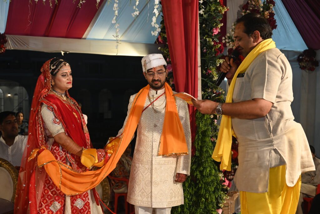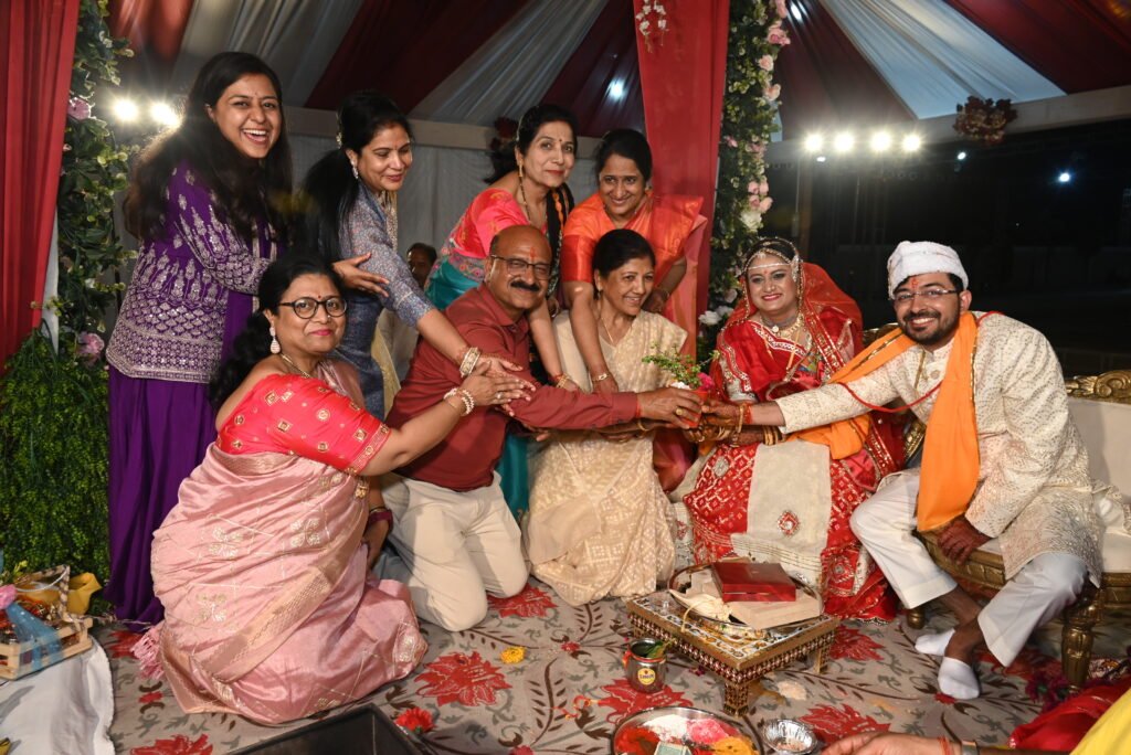 बरबड़ रोड स्थित जोधा बाग में शास्त्री नगर निवासी विजय धनोतिया के सुपुत्र शुभम धनोतिया का विवाह उज्जैन निवासी हर्षिता डबकरा से हुआ पेशे से सॉफ्ट वेयर इंजीनियर शुभम पिछले 7 सालों से अमेरिका में रहकर अमेजॉन कंपनी में नौकरी कर रहे है शुभम व हर्षिता के विवाह के 7 फेरो की रस्म पंडित तरुण द्विवेदी ने संपन्न करवाई। साथ दूल्हा-दुल्हन को सात वचन स्वीकार करने के पश्चात पंडित तरुण अनूठा प्रयोग किया तथा दूल्हा दुल्हन से आठवां वचन स्वीकार करवाया। उन्होंने दूल्हा दुल्हन से स्वीकार करवाया कि दूल्हा दुल्हन विदेश अमेरिका में भी रहकर सत्य सनातन भारतीय परंपरा व धर्म का पालन करेंगे विदेश में रहकर अपनी मातृभूमि से प्रेम रखते हुए उसका सम्मान बनाए रखने का हर संभव प्रयास करेंगे, दूल्हा दुल्हन ने खुशी-खुशी आठवां वचन भी स्वीकार किया तथा उसके पालन की बात दोहराई।