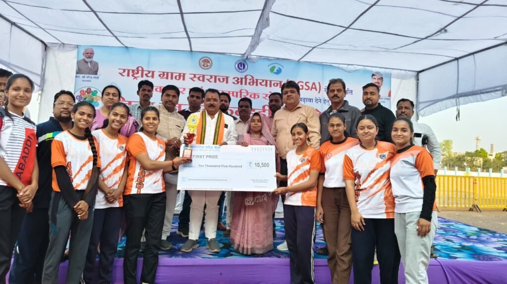 रतलाम 26 फरवरी । राष्ट्रीय ग्राम स्वराज अभियान (RGSA) के अन्तर्गत नवाचार एवं पारंपरिक खेलो को बढ़ावा देने हेतु सीईओ जिला पंचायत सुश्री वैशाली जैन के मार्गदर्शन में जिला प्रशासन व जिला पंचायत के द्वारा जिला खेल और युवा कल्याण विभाग के माध्यम से दिनांक 26 फरवरी को जिला स्तरीय कबड्डी प्रतियोगिता का अयोजन पोलो ग्राउण्ड पर किया गया। जिसमें जिले के जनपद पंचायत रतलाम, जावरा, सैलाना, पिपलौदा, आलोट, बाजना के बालक/बालिका खिलाड़ियों के द्वारा कबड्डी खेल प्रतिभागीता कि गई। जिसमें बालक वर्ग में विजेता बाजना, उपविजेता जावरा एवं तृतीय स्थान आलोट ने प्राप्त किया । बालिका वर्ग में विजेता पिपलौदा उपविजेता जावरा एवं तृतीय स्थान सैलाना ने प्राप्त किया गया। विजेता टीम को 10500 रुपये उपविजेता टीम को 5500 रुपये तृतीय स्थान को 1550 रूपये कि राशि व ट्राफी से पुरस्कृत किया गया। कार्यक्रम के मुख्य अतिथि श्रीमती लालाबाई शम्भूलाल चन्द्रवंशी जिला पंचायत अध्यक्ष, जिला अध्यक्ष श्री प्रदीप जी उपाध्याय, जिला खेल अधिकारी श्रीमती रूचि शर्मा, अतिरिक्त मुख्य कार्यपालन अधिकारी श्री निर्देशक शर्मा व क्रीडा भारतीय के जिला सचिव श्री अनुज शर्मा उपस्थित रहे। मुख्य अतिथि का स्वागत नरेन्द्र पांढारकर, राहुल वाघेला, सीमा कुंवर, निलेश कुशवाह, जयदेव साल्वी, राकेश कुशवाह, शम्भुलाल चौधरी, परवेज आलम खान, दिनेश, दुर्गा शंकर मोयल ग्रामीण युवा समन्वयक आलोट, ममता सिंह ग्रामीण युवा समन्वयक बाजना में पुष्प गुच्छ से स्वागत किया गया। उपरांत मुख्य अतिथियो के द्वारा खिलाड़ियों को सम्मानित किया गया। कबड्डी प्रतियोगिता में निर्णायक की भूमिका आर.सी तिवारी, मुकेश जाट, सैवाराम जाट, सुरेश मालवीय, ममतासिंह, दुर्गा डामोर, प्रीती चरपोटा द्वारा की गई। एवं कार्यक्रम का संचालन जितेन्द्र धुलिया खेल प्रशिक्षक ने किया व आभार राहुल वाघेला ने किया।