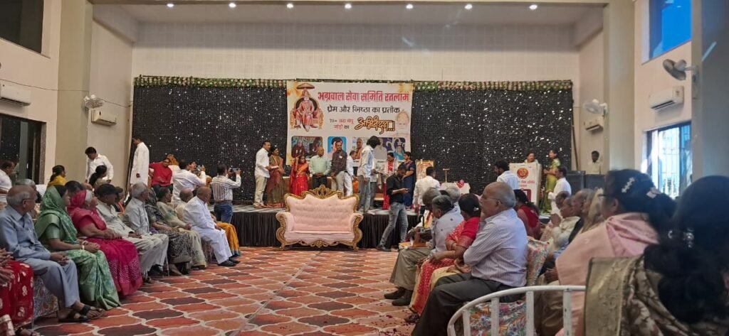 रतलाम। अग्रवाल सेवा समिति द्वारा आयोजित 53 वरिष्ठ युगलों का सम्मान समारोह केवल एक कार्यक्रम नहीं, बल्कि भावनाओं, संस्कारों और पीढ़ियों के मिलन का पावन उत्सव बन गया। ढोल-नगाड़ों की मंगल ध्वनि के बीच जब पुष्प वर्षा करते हुए सभी वरिष्ठ युगलों को सम्मानपूर्वक हाल में प्रवेश कराया गया, तो पूरा वातावरण श्रद्धा से भर उठा। तिलक, माल्यार्पण और शॉल ओढ़ाकर किए गए स्वागत ने हर हृदय को स्पर्श किया।