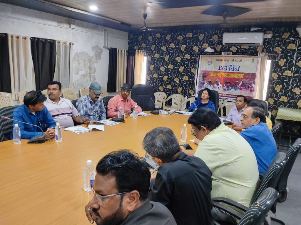 रतलाम । जिला पंचायत सभाकक्ष में आयोजित मीडिया संवाद कार्यक्रम के अंतर्गत मुख्य कार्यपालन अधिकारी, जिला पंचायत सुश्री वैशाली जैन द्वारा VB-G RAM G अधिनियम 2025 के संबंध में विस्तृत प्रस्तुतीकरण किया गया।