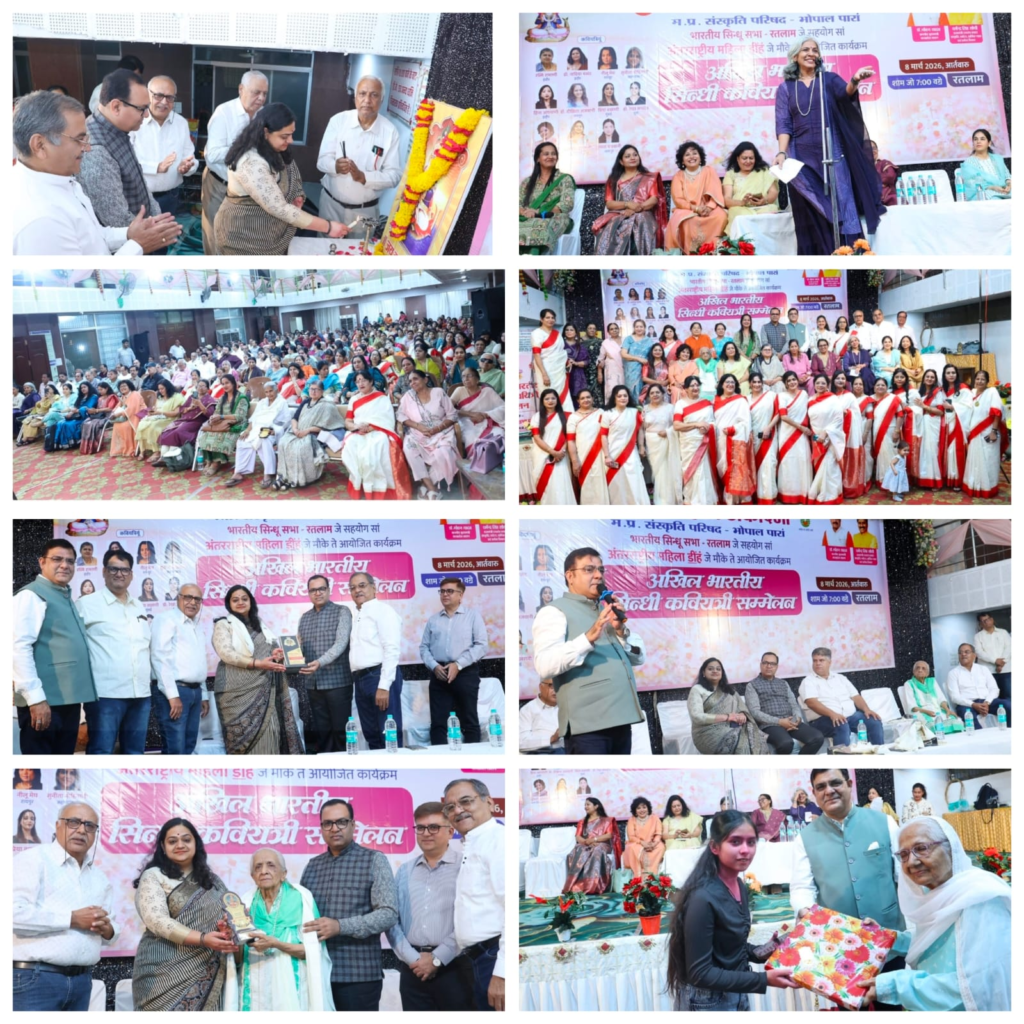 रतलाम। रतलाम में अंतरराष्ट्रीय महिला दिवस (8 मार्च) के अवसर पर सिंधी साहित्य अकादमी (म.प्र. संस्कृति परिषद, भोपाल) एवं भारतीय सिंधु सभा, रतलाम के सहयोग से श्री गुरुनानक भवन में अखिल भारतीय सिंधी कवयित्री सम्मेलन भव्यता के साथ आयोजित किया गया। कार्यक्रम महिला शक्ति को समर्पित रहा और संचालन भी महिला शक्ति द्वारा किया गया।