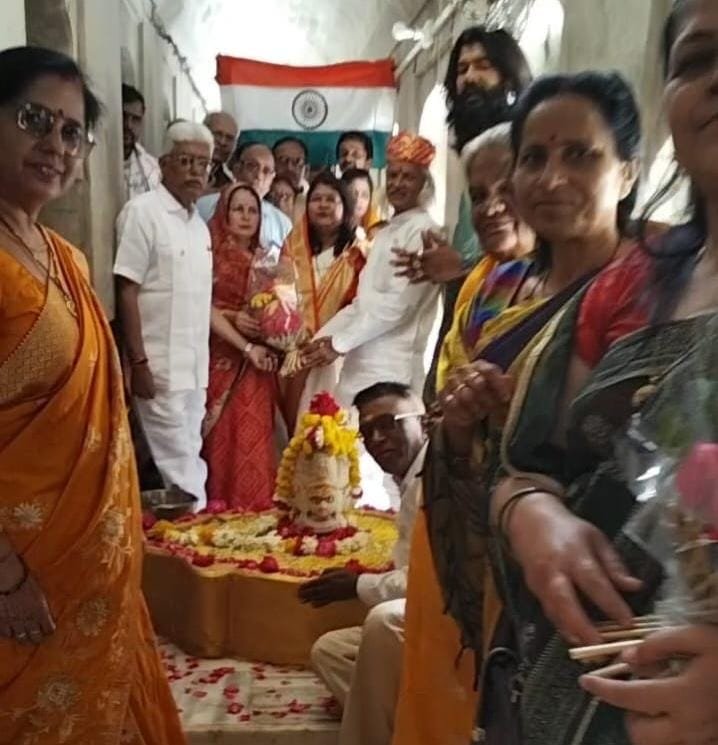 रतलाम । सर्व ब्राह्मण महासभा महिला मंडल रतलाम की अध्यक्षा श्रीमती कौशल्या त्रिवेदी ने अपने जन्मदिन के अवसर पर श्री सनातन धर्म सभा की ओर से बागड़ों का वास स्थित श्री अगर जी के मंदिर में चमत्कारी प्राचीन श्री चौमुखा महादेव का अभिषेक कर अहमदाबाद में आयोजित क्रिकेट के ञ्ज20 विश्व कप में भारत की विजय श्री दिलाने पर चौमुखा महादेव का आभार व्यक्त किया गया। विश्व कप फाइनल मैच के पूर्व सनातन धर्म सभा ने विजय की कामना से एक अभिषेक किया था।