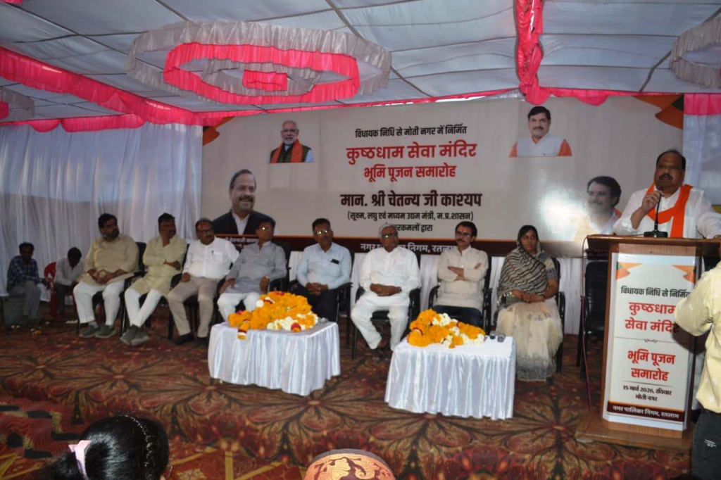 उक्त उद्गार सूक्ष्म, लघु एवं मध्यम उद्यम मंत्री एवं विधायक रतलाम शहर माननीय श्री चेतन्य जी काश्यप ने मोती नगर में विधायक निधि से निर्मित होने वाले कुष्ठधाम सेवा मंदिर भवन निर्माण कार्य के भूमि पूजन के अवसर पर व्यक्त किये।