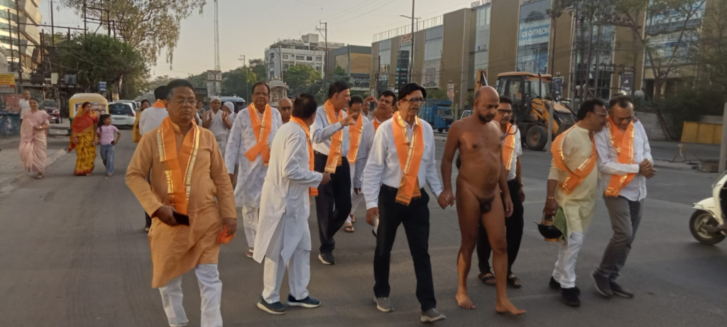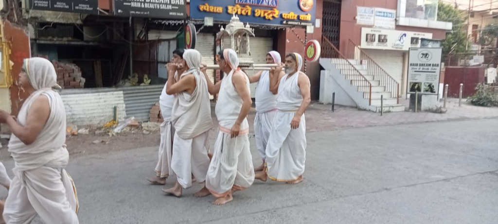 सोमवार को श्री महावीर दिगंबर जैन उदासीन आश्रम से पद यात्रा आरंभ हुई। पलासिया चौराहा, एबी रोड होते हुए पदयात्रा श्री शांतिनाथ दिगंबर जैन मंदिर जावरवाला पहुंची। यहां श्री जी के अभिषेक के बाद उन्हें रजत पालकी में विराजित किया गया। श्री जी की पालकी की शोभायात्रा अंतर्मुखी मुनिश्री पूज्यसागर जी के सानिध्य में रवाना हुई। विभिन्न मार्गों से होते हुए पालकी शोभायात्रा बैंडबाजों के साथ भक्ति गीत गाते हुए चल रही थी एवं जगह जगह श्री जी की पालकी की आरती की गई।