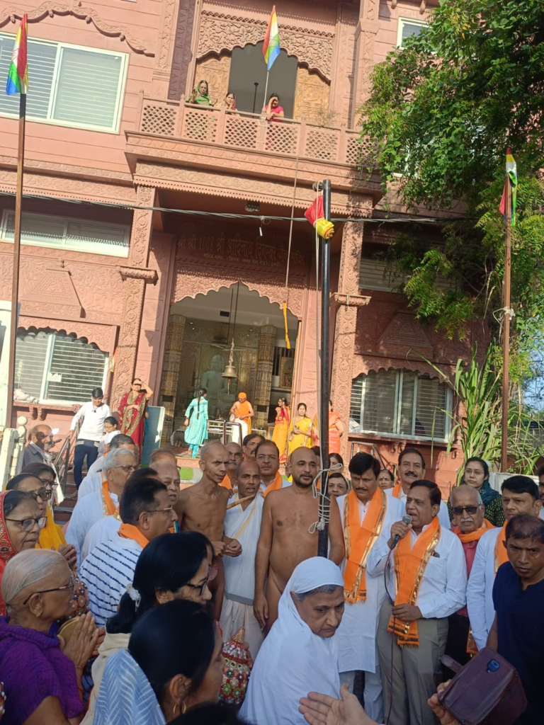 इंदौर (राजेश जैन दद्दू)। परमपूज्य पुज्य सागर जी महाराज के सानिध्य दिगम्बर जैन सोशल ग्रुप फैडरेशन दिगम्बर जैन समाज सामाजिक संसद महावीर ट्रस्ट के संयुक्त तत्वावधान मे प्रत्येक जिनालय से निकाली जा रही है आज कनाडिया मंदिर से शुरू हो कर गोयल नगर तिलकनगर जैन मंदिर होते हुये शोभायात्रा वापिस कनाडियारोड मंदिर पहुंची। फेडरेशन के मिडिया प्रभारी राजेश जैन दद्दू ने बताया कि जगह जगह श्री जी आरती एवं परम पूज्य मुनि श्री पुज्य सागर जी के पाद प्रक्षालन का समाज जन ने सोभाग्य प्राप्त किया। इस अवसर पर दिगम्बर जैन समाज सामाजिक संसद के निर्वाचित अध्यक्ष श्री आनंद जी गोधा , मनोहर झांझरी सुशील पांड्या डीके जैन डीएसपी राजेन्द्र सोनी प्रदीप चौधरी आशीष जैन संजय अहिंसा रितेश पाटनी अजयमिटा संजय पापड़ी वाल सहित फेडरेशन पदाधिकारी का अभिनंदन सम्मान जिनालय ट्रस्ट के प्रमुख महावीर जैन पवन मोदी विरेन्द्र पप्पन विनोद जैन द्रारा किया गया *कल 18 मार्च को प्रभात फेरी शोभायात्रा प्रातः 6:30 उदयनगर जिनालय से प्रारंभ होकर वैभव नगर से वापसी उदयनगर जिनालय आयेगी आप सभी इस पल के साक्षी बने और धर्म लाभ प्राप्त करें।