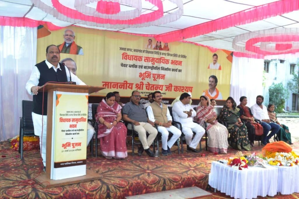 - जनता नगर नयागांव में विधायक सामुदायिक भवन, पेवर ब्लॉक एवं बाउण्ड्रीवॉल का भूमिपूजन संपन्न