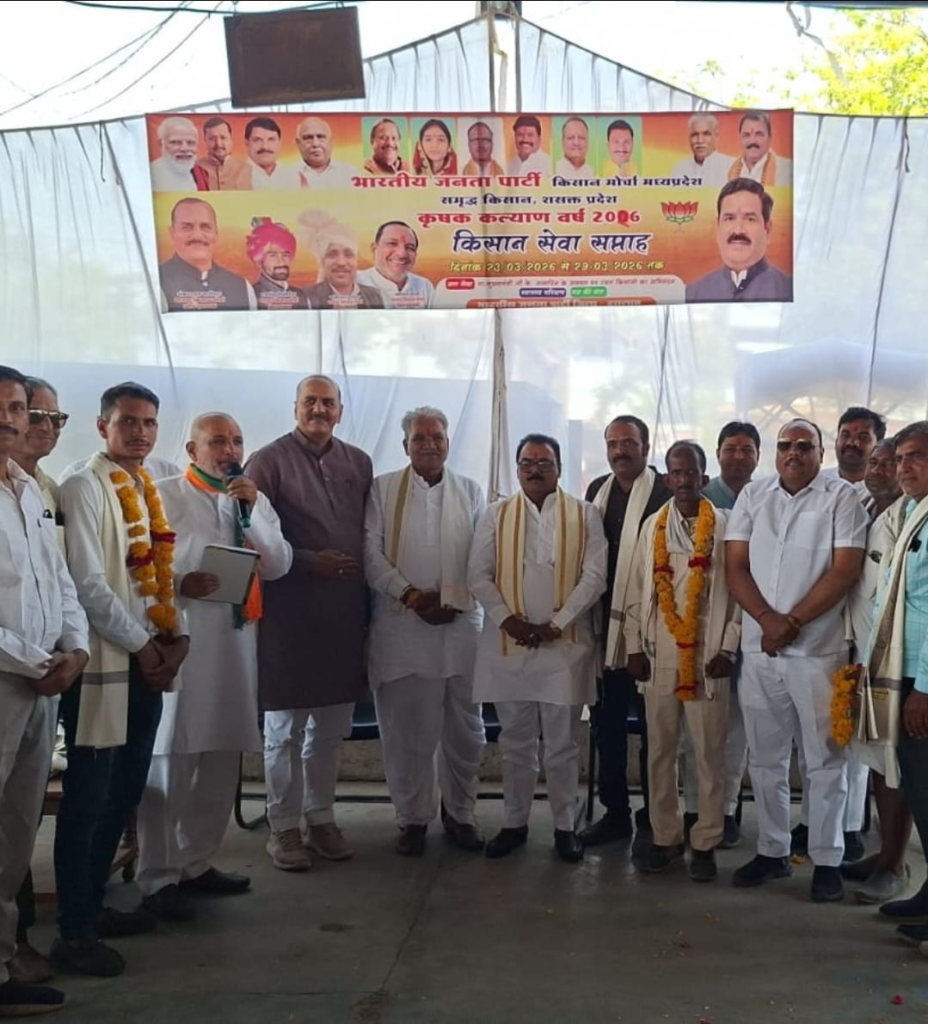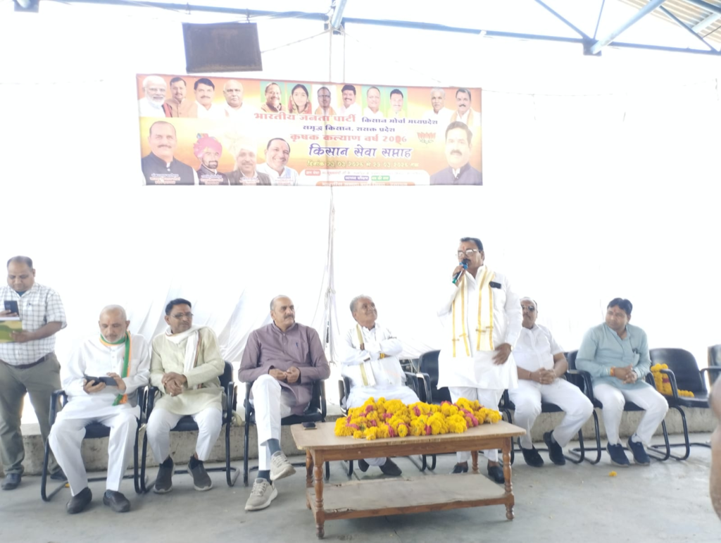 कार्यक्रम की अध्यक्षता भाजपा जिला अध्यक्ष प्रदीप उपाध्याय ने करते हुए बताया की किसान हमारे अन्नदाता है जिनका सम्मान करना हमारा कर्तव्य है प्रदेश के मुख्यमन्त्री डॉ मोहन यादव द्वारा किसान हितेषी कई योजनाओ का लाभ हमारे किसान भाईयो मिल रहा है! मुख्य अतिथि ग्रामीण विधायक मथुरलाल डामर ने कहा की आज भाजपा सरकार ने किसानो की समस्याओं को समझा और भावंतर,किसान सम्मान निधि , किसान क्रेडिट कार्ड योजना आदि योजनाओ से किसानो को राहत मिल रही है! प्रदेश उपाध्यक्ष शंकरलाल पाटीदार ने संबोधित करते हुए बताया की किसान मोर्चा द्वारा हमेशा किसानो के लिए चलाई जा रही योजनाओ को हर किसान तक पहुचाने का कार्य कर रहा है और अभी “किसान सेवा सप्ताह” मे कृषि उपज मण्डी मे प्याऊ लगाकर किसानो के लिए यह व्यवस्था करी गई है ! प्रगतिशील किसान, प्राकृतिक खेती और गोपालक अन्नदाता किसान भाइयों का पुष्प माला एवं शाल उड़ाकर सम्मान किया गया । जिसमें प्रमुख किसान भाई समरथ पाटीदार, गोपाल चौधरी, सुरेश खराड़ी ,अमित कुमावत, नगुलाल ,रायसिंह डोडियार, नानालाल ,राजेंद्र सिंह, चंद्रभान सिंह, बनेसिंह आदि थे ।