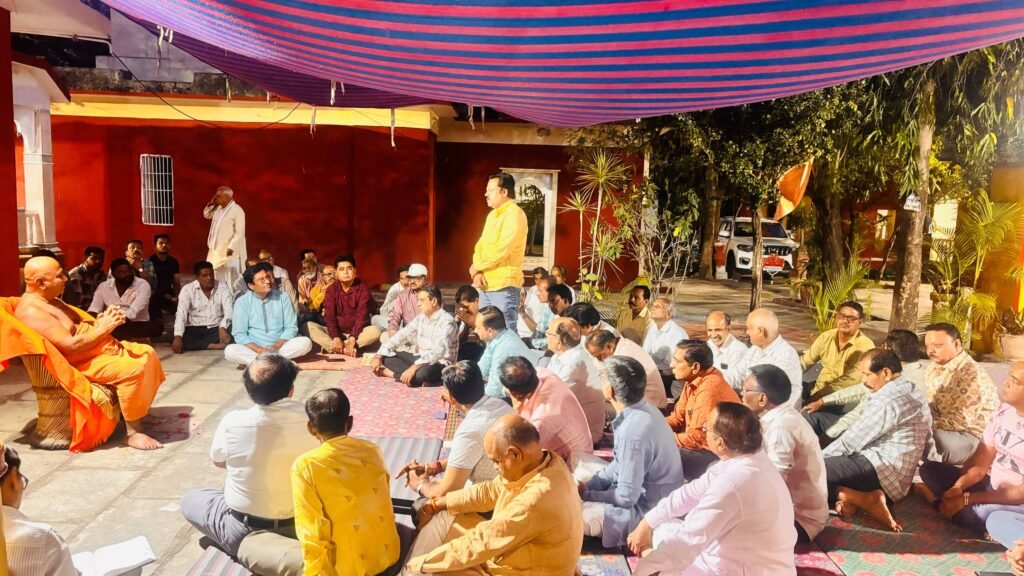 इसी क्रम में दिनांक 29 मार्च 2026 रविवार को श्री नित्यानंद आश्रम में शाम को प्रथम चरण में कई समाज प्रमुखों की आयोजन को सफल बनाने को लेकर संत श्री नर्मदानंद जी बापजी की के सानिध्य में बैठक संपन्न हुई जिसमें समाज प्रमुखों ने अपने-अपने समाज की ओर से उक्त आयोजन में सम्मिलित होकर अपनी पूर्ण सक्रिय भूमिका बढ़-चढ़कर हिस्सा लेने एवं आयोजन को सफल बनाने हेतु कई महत्वपूर्ण सुझाव दिए। अगले चरण में शेष समाजजन एवं धार्मिक संस्थानों को आमंत्रित कर सहभागिता हेतु युवा समाज सेवी मदन सोनी ने सुझाव दिये कार्यक्रम को लेकर अनिल झालानी अध्यक्ष सनातन धर्मसभा, राजेश तिवारी -अध्यक्ष गुर्जर गोड समाज, संदीप व्यास -अध्यक्ष सारस्वत समाज, सत्येंद्र जोशी -अध्यक्ष भार्गव ब्राह्मण समाज, अजय जोशी- अध्यक्ष दधीचि ब्राह्मण समाज, गोविंद काकानी- माहेश्वरी समाज जनक नागल -अध्यक्ष जांगिड़ ब्राह्मण समाज, आर सतवानी- अध्यक्ष सिंधी समाज, पुरुषोत्तम पांचाल- महासचिव पांचाल समाज, रमेश पांचाल -अध्यक्ष जूना गुजराती लोहार सुथार, ज्ञानचंद्र कृष्णानी- अध्यक्ष सिंधी गुरुद्वारा विरियाखेड़ी, एडवोकेट देवेंद्र गुर्जर अध्यक्ष जिला गुर्जर समाज, कृष्ण गोपाल आचार्य -अध्यक्ष ओदिच्य ब्राह्मण समाज, सुनील शर्मा -सचिव ओदिच्य ब्राह्मण समाज, चंपालाल जोशी- अध्यक्ष मेनारिया ब्राह्मण, प्रभु लाल सोलंकी- अध्यक्ष श्री रविदास समाज, शंकर लाल- अध्यक्ष मेवाड़ माली समाज, नरेंद्र जोशी- अध्यक्ष चौबीस ब्राह्मण समाज, मुन्नालाल प्रजापति -प्रजापति समाज, आनंद परमार अध्यक्ष दामोदर वंशीय जूना गुजराती दर्जी समाज, सुरेश राठौड़ -अध्यक्ष तेली समाज, भारत सोलंकी -अध्यक्ष दर्जी समाज उमाशंकर सिर्वी -सिर्वी समाज प्रवीण उपाध्याय सर्व ब्राह्मण समाज, राधारमण शर्मा -सर्व ब्राह्मण समाज, अनिल भावसार- भावसार समाज, सुरेश माथुर -कायस्थ समाज