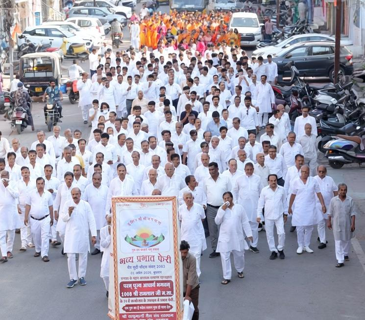 रतलाम। साधुमार्गी जैन संघ रतलाम द्वारा आचार्य श्री रामलाल जी मसा के 74वीं जन्म जयंती के उपलक्ष में प्रातः 8:00 बजे समता सदन घास बाजार से प्रभात फेरी निकाली गई जो की शहर के प्रमुख मार्ग मानक चौक डालूमोती बाजार नाहरपुरा धानमंडी बजाज खाना चांदनी चौक चौमूकीपुल होते हुए समता भवन नोलाइ पूरा पर पहुंची प्रभात फेरी में पुरुष श्वेत परिधान एवं महिला केसरिया परिधान धारण करे हुए जय जयकार जय जयकार राम गुरु की जय जयकार के नारों की गंज के साथ सम्मिलित हुए तत्पश्चात धर्मालु जन द्वारा रमेश चालीसा का पाठ समता भवन पर किया उपरोक्त जानकारी देते हुए संघ के उपाध्यक्ष प्रीतेश गादिया ने बताया कि इस अवसर पर शासन दीपक निश्चल मुनि जी महाराज साहब ने अपने प्रवचन में फरमाया कि महान व्यक्ति बनना और महान व्यक्ति का चयन होना सामान्य बात नहीं है व्यक्ति अपनी क्रिया चरित्र वचन व अपने जीवन में निर्लिंप्त होकर ही आचार्य पद जैसे महानतम पद पर अरुड़ हो सकते हैं हम सौभाग्यशाली हैं कि हमें ऐसे आचार्य का सानिध्य प्राप्त हो रहा है साथ ही उपाध्याय प्रवर राजेश मुनि जी महाराज साहब का सानिध्य समय-समय पर मिलता रहता है इस अवसर पर श्री चिन्मय मुनि जी महाराज साहब महासती श्री सर्वज्ञ श्री जी महाराज साहब ने भी अपने भाव प्रस्तुत किये सभा में संघ अध्यक्ष विनोद मेहता ने भी अपने भाव रखें सभा का संचालन मंत्री पंकज मूनत ने किया इस अवसर पर संघ के उपाध्यक्ष निर्मल लूनिया सुशील गोरेचा दशरथ बाफना सह मंत्री विनोद मुनत सुनील पटवा पूर्व अध्यक्ष चंदन पिरोदिया सुदर्शन पिरोदिया कांतिलाल छाजेड़ महिला मंडल अध्यक्ष संगीता मुनत शोभा पगारिया समता युवा संघ से अर्पित गांधी अर्पित बाफना बहू मंडल से श्वेता पीरोदिया कविता मेहता बालक मंडल से नमन कोठारी जय बाफना बालिका मंडल से परी लासोड एनी मुरार व संघ कार्यकारिणी सदस्य सुमित कटारिया प्रकाश नांदेचा प्रसनजीत बोहरा निर्मल भंडारी महेंद्र कटारिया प्रकाश कोठारी निर्मल मूनत आदि श्रावक श्रविकाएं व संघ सदस्य इस अवसर पर उपस्थित थे। प्रवचन पश्चात सभी धर्मालुजन ने आचार्य श्री की जन्म जयंती के पवन प्रसंग पर 31दिवसीय तक संथारा मासश्रमन गतिमान रखने वाली महासती श्री कीर्तियशा जी महाराज साहब दर्शन लाभ लिए एवं उनके चल रहे इस संथारा के उपलक्ष में कई भाई बहन त्याग तपस्या धर्म आराधना कर उन्हें वंदना अर्ज कर रहे हैं।